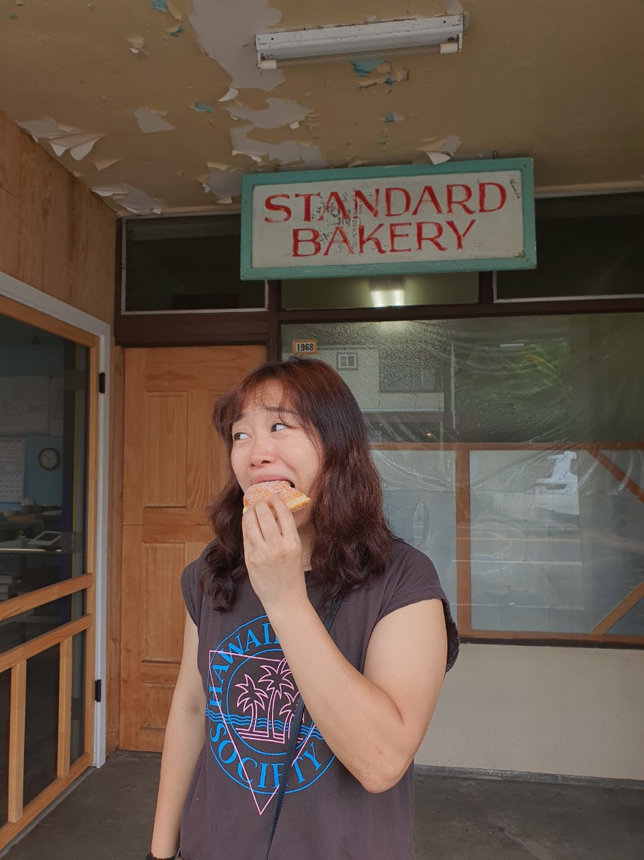 불현듯 불어오는 바람을 타고 맛있는 도넛 냄새가 우리를 작은 빵가게로 인도했다. 이런 곳, 느낌 좋아, 맛있을 것 같아 하며 커스터드가 든 말라사다 하나를 사 먹었다. 커스터드가 안 달아서 좋았지만 묘하게 맛있지도 않아서 딱히 또 가진 않을 것 같다. 케아우호우 kta 베이커리에서 파는 말라사다가 내 입에는 훨씬 맛있다.