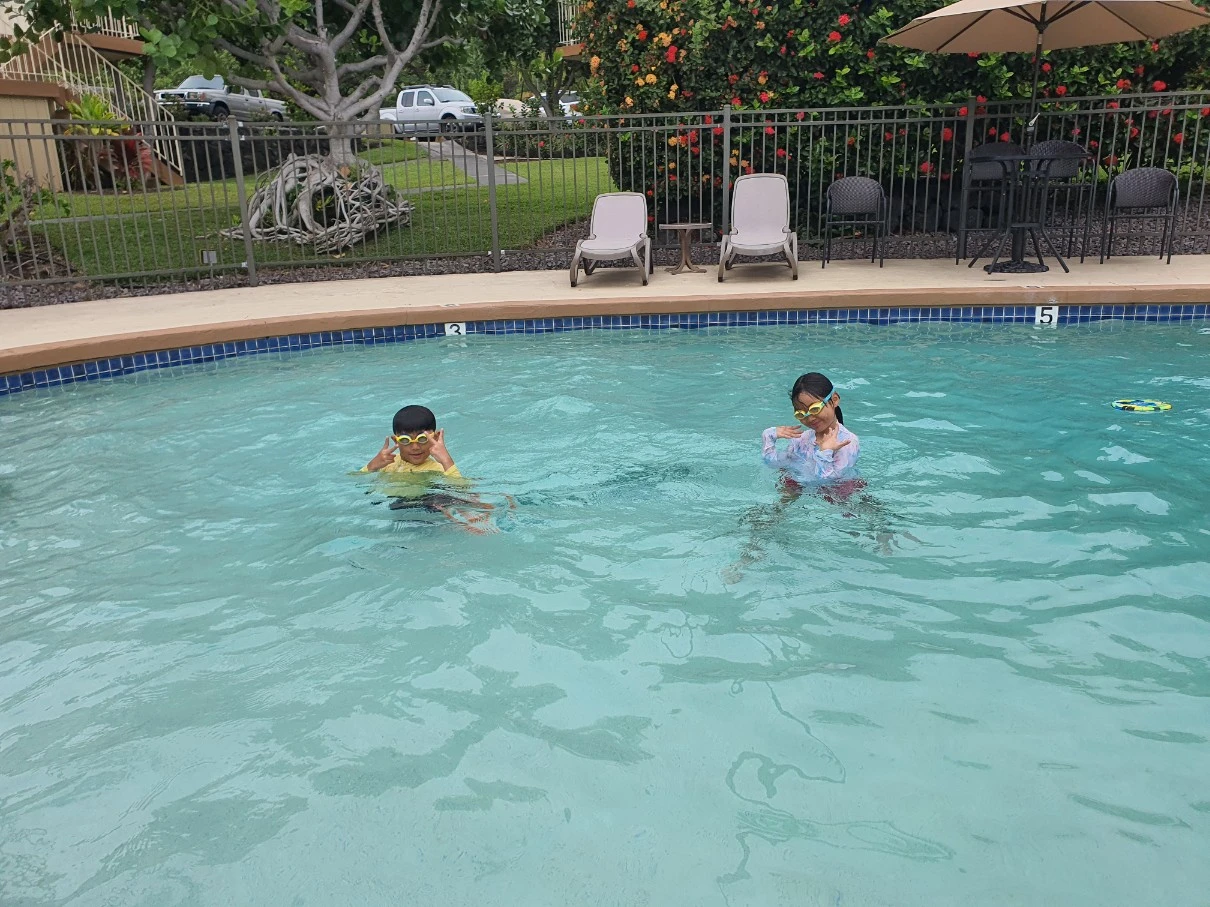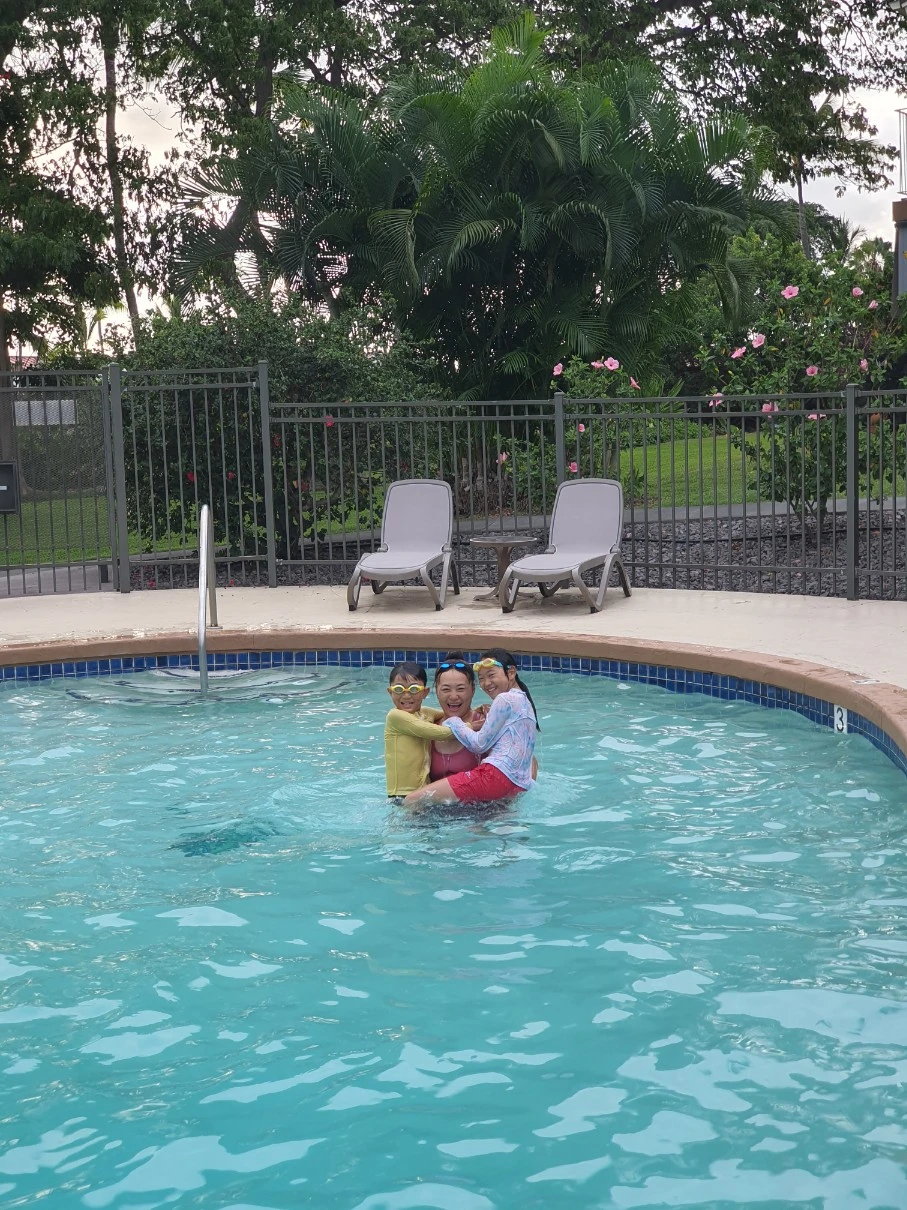 작은 아이가 어젯밤 자기 전에 내일은 꼭 엄마도 수영장에 들어오라고 했다. 내가 대답을 했나 보다, 그러겠다고... 오늘은 약속대로 들어오란다.