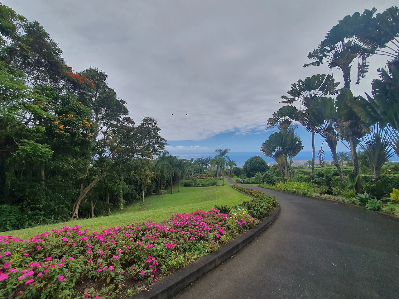 나만 커피를 마시고 남편은 물만 꿀떡꿀떡 마신 터에 더 그래 보였던 것 같다. 덕분에 우리는 직원들에게 허락을 받고 올라가는 길에 과일을 더 딸 수 있었다. 원래는 경사가 좀 있어서 돌아갈 때 셔틀을 타고 올라갈 수 있는데 포기하고 좀 걷기로 했다.