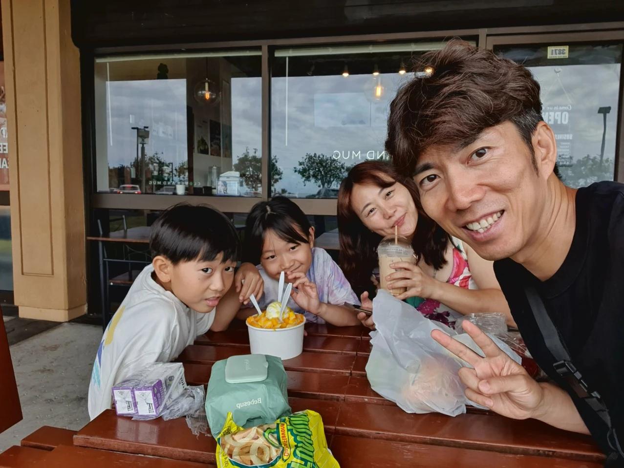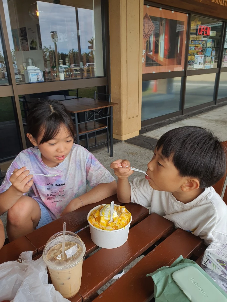 우리는 케아우호우 쇼핑센터에 들러 어제 커피머신이 고장 나서 지나쳤던 클로버 앤 머그를 지나갔다. 한국인 사장님이 계셨다. 아이들이 한국인이라는 말을 듣고 홀린 듯이 들어가서 인사를 하고 나왔다.