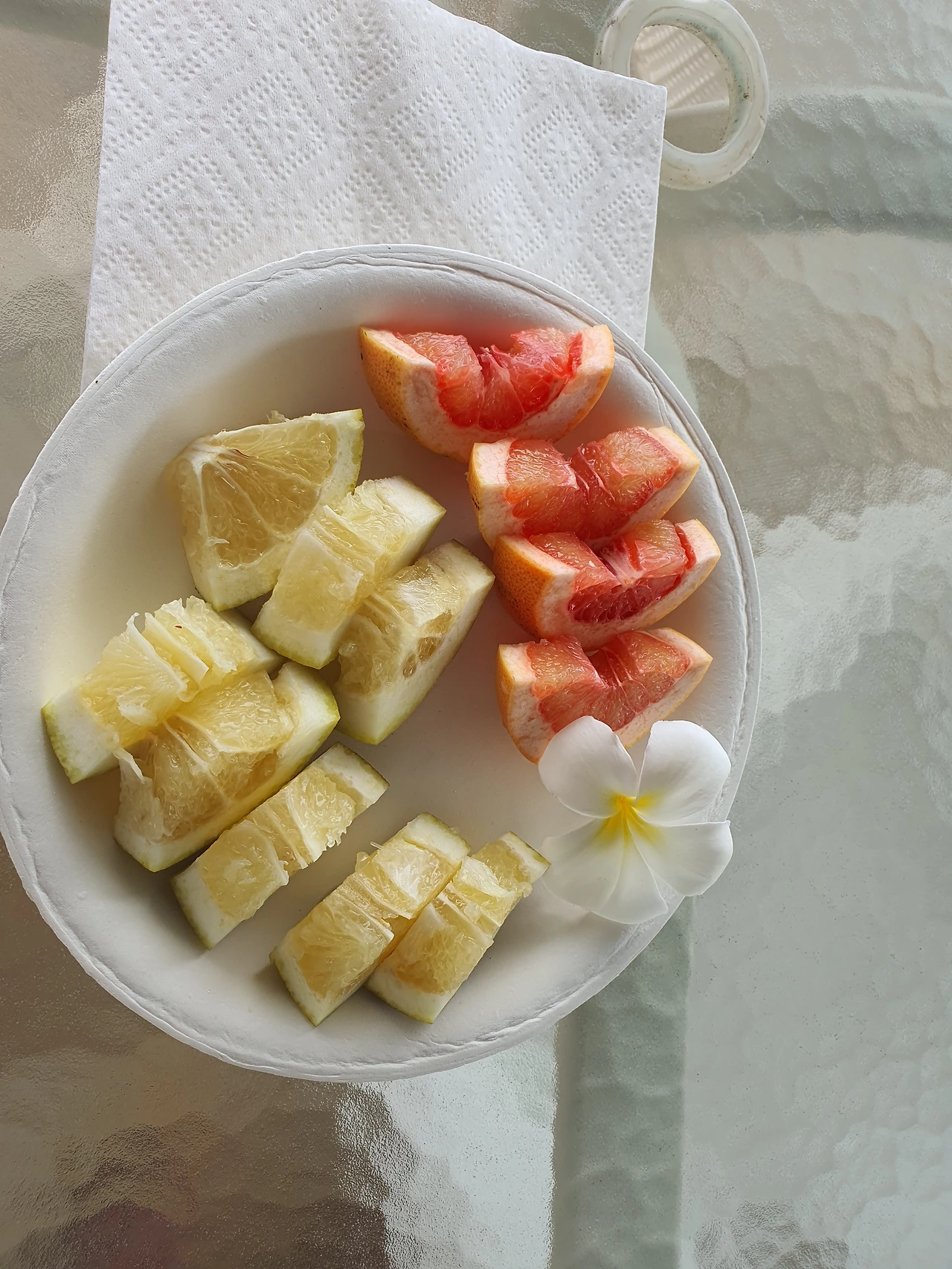 파인애플 말고는 오렌지 하나를 따갔는데, 친절하게도 다른 것도 함께 내주셨다, 예쁜 플루메리아 꽃과 함께...