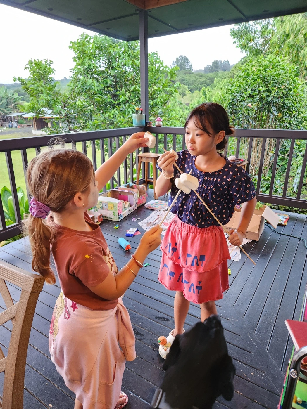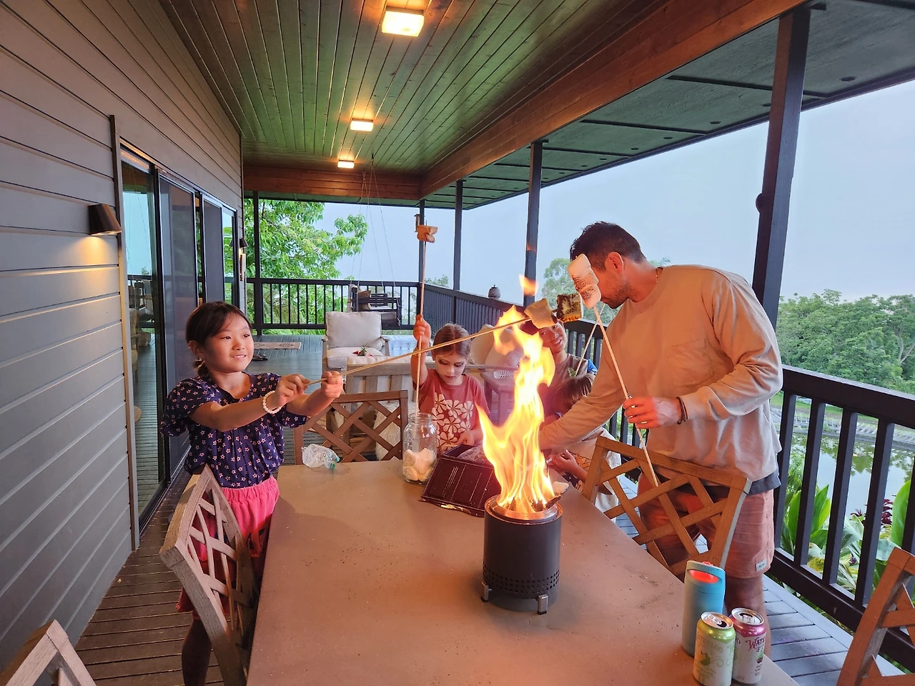 아이들은 당장 완성될 인생 첫 스모어를 기대하고 있지만...