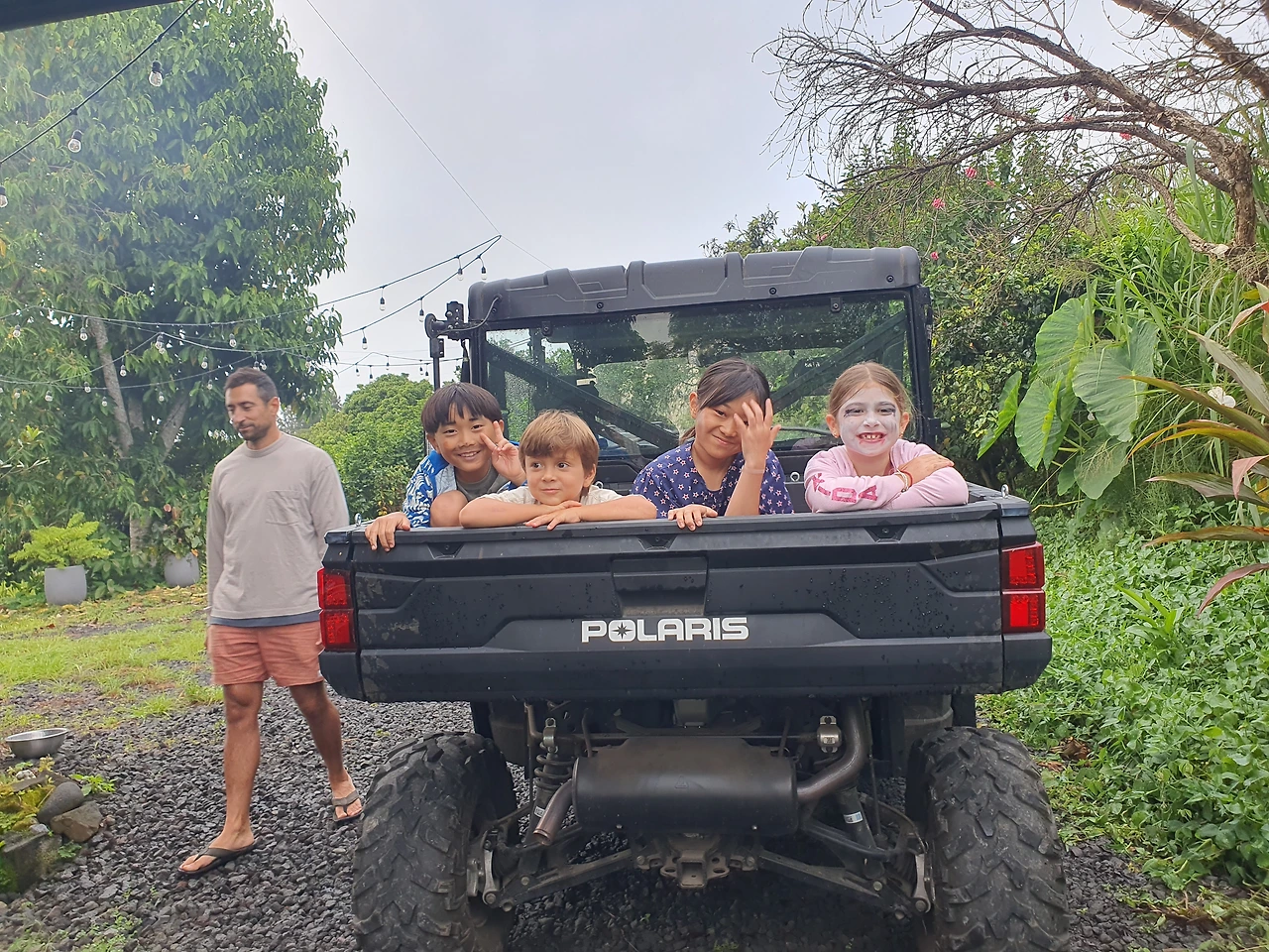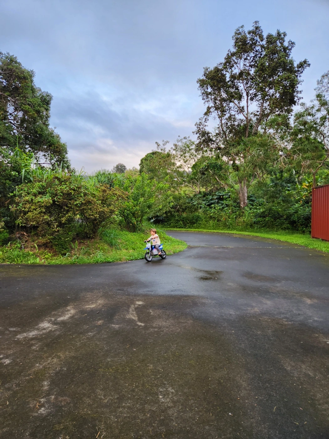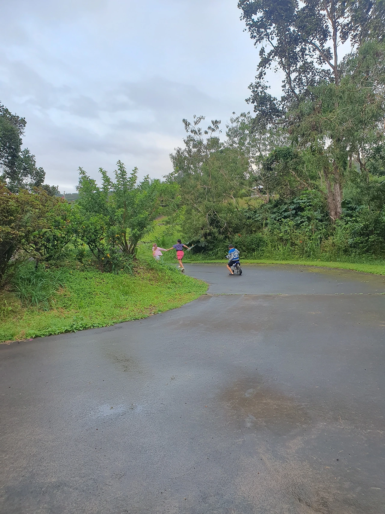 아이들은 이미 언덕을 내려가 전기오토바이와 자전거를 타며 에너지를 발산하고 있었다.