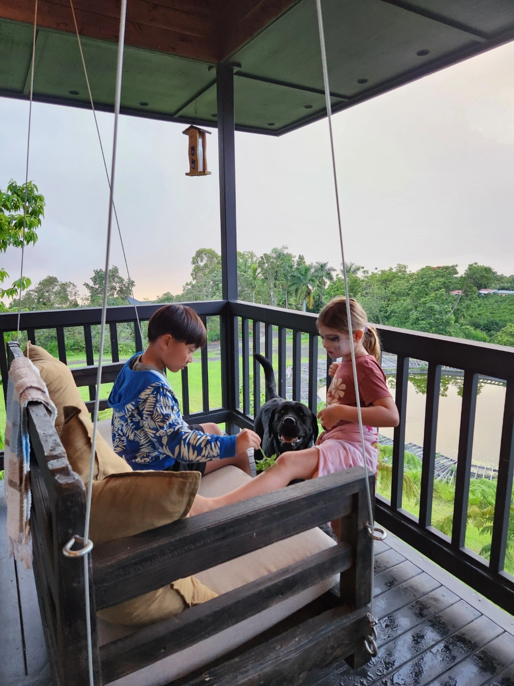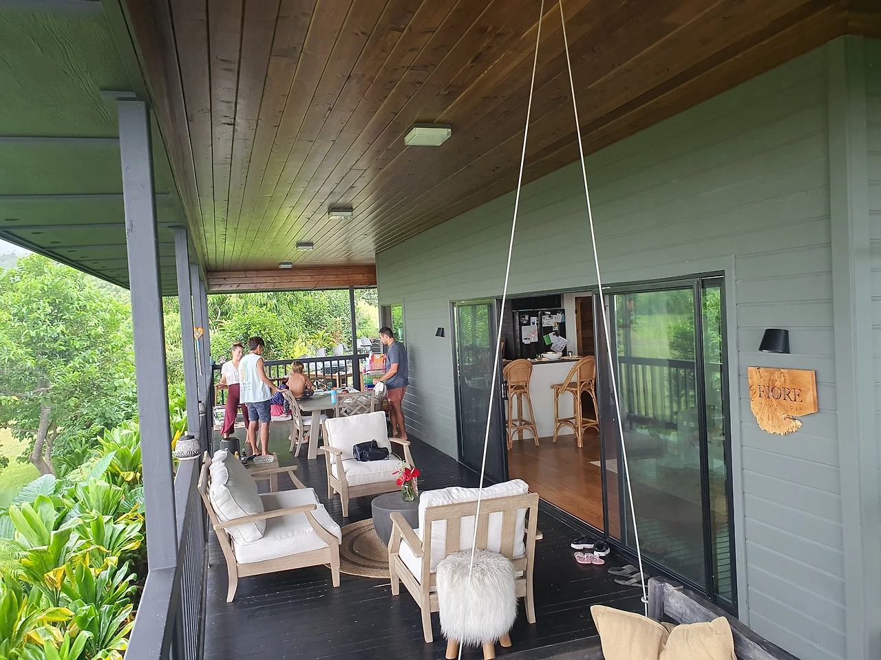 이미 베이다의 엄마가 지금 메인하우스는 공사 중이고, 지금은 미래의 게스트하우스에서 살고 있고, 트리하우스가 있고, 템플(개인 명상장소인 듯)이 있고, 아주 작은 공간에 아이들을 위해 학교라고 이름 붙여 놓았고, 커다란 연못이 있는데 거기에 데크작업중이고 몇 에이커(감 안 오는 단위라 놀라지도 않음) 땅에 과일나무들이 있고...