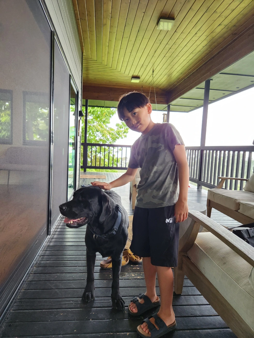 멀리서 곰만 한, 아니 늑대만 한, 아니, 어쨌든 집채만 한 검은 개가 마구 달려왔다. 베이다만 반가워했다. 우리는 사실 모두 쫄았다. (하지만 그 거대한 순둥이는 우리를 무장해제하도록 만들었다. 나중에는 내 배에 턱을 대고 앉아서 옷에 침이 그득 묻을 정도로 친해졌다.)
