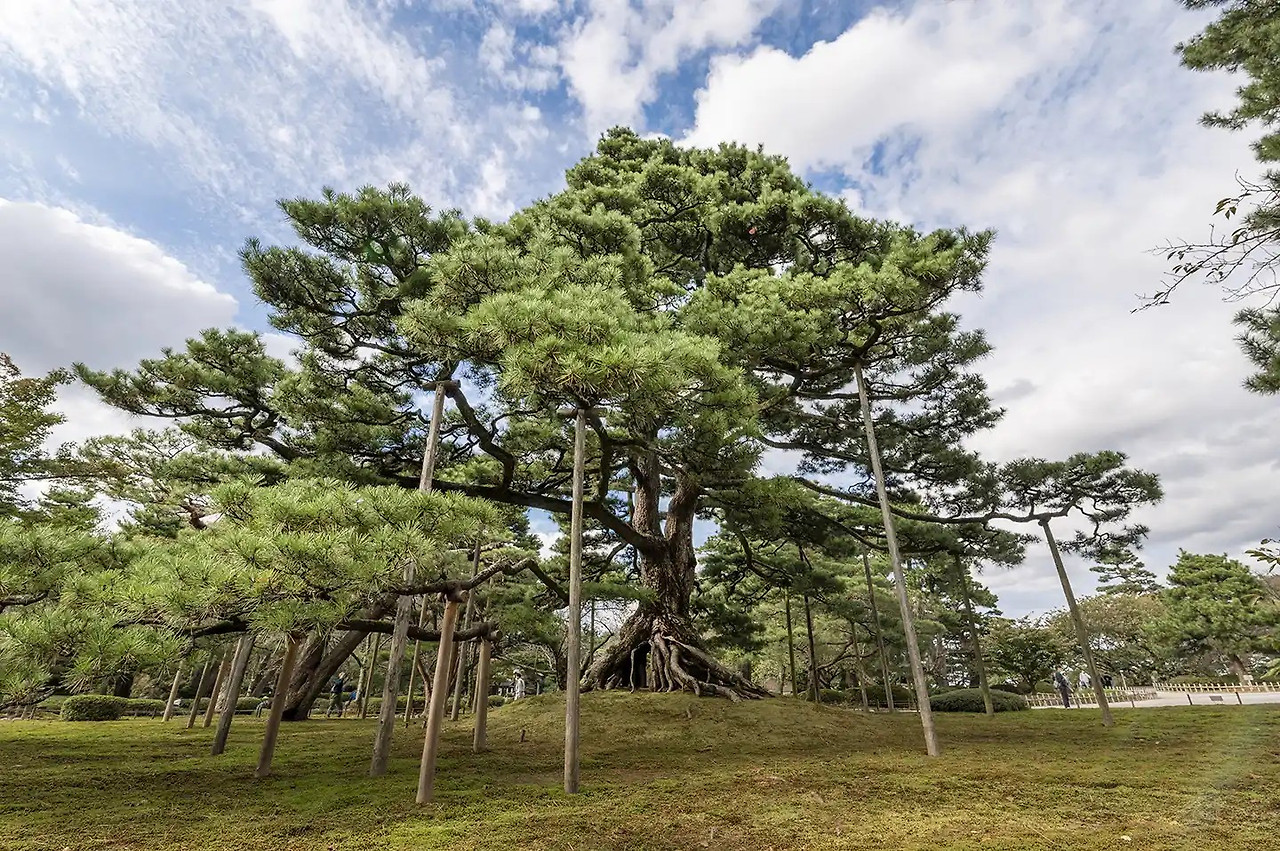 또 도요토미 히데요시가 마에다 가문에 하사했다는 가이세키 탑과 뿌리가 지면 위로 드러난 독특한 소나무 네아가리마쓰(根上松)도 인상적이다.