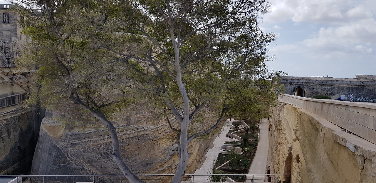 반도의 절벽 위에 자리한 발레타는 지형만으로도 천혜의 요새라 할 만하다. 그러나 잦은 외침에 대비하기 위해 16세기 중엽, 도시 전체를 감싸는 성벽과 깊이 18미터에 이르는 해자를 조성하며 더욱 견고한 방어 도시로 거듭났다.