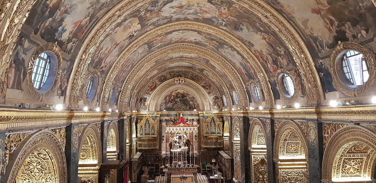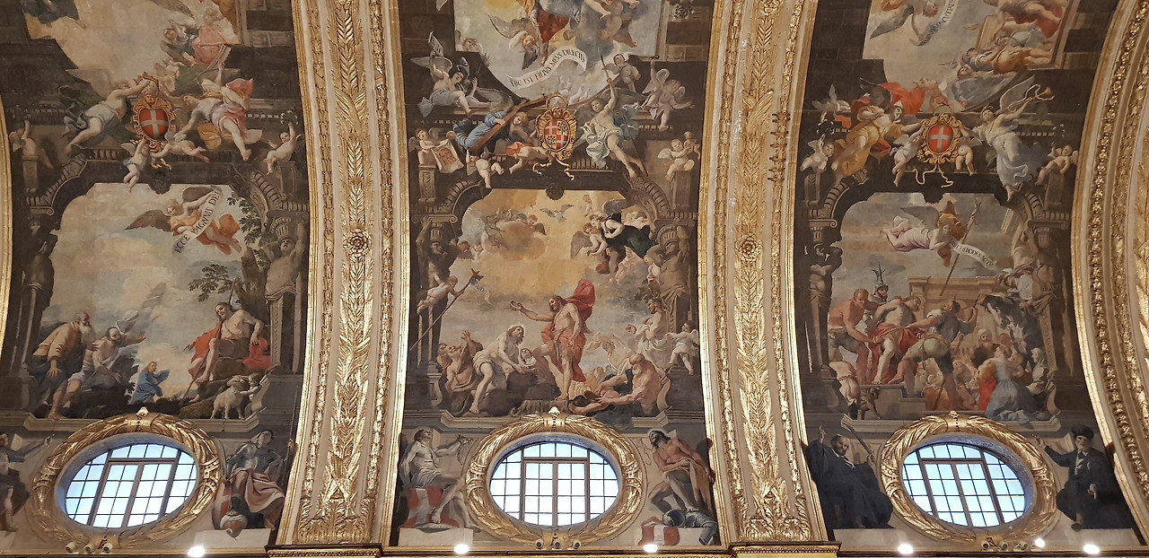 성당 내부에는 성 요한의 생애가 촘촘히 담겨 있다. 특히 천장에는 세례 요한의 탄생에서 순교에 이르기까지의 이야기가 프레스코화로 펼쳐져 있다. 이 작품은 화가 마티아 프레티(Mattia Preti)가 무려 6년에 걸쳐 완성한 것이다.