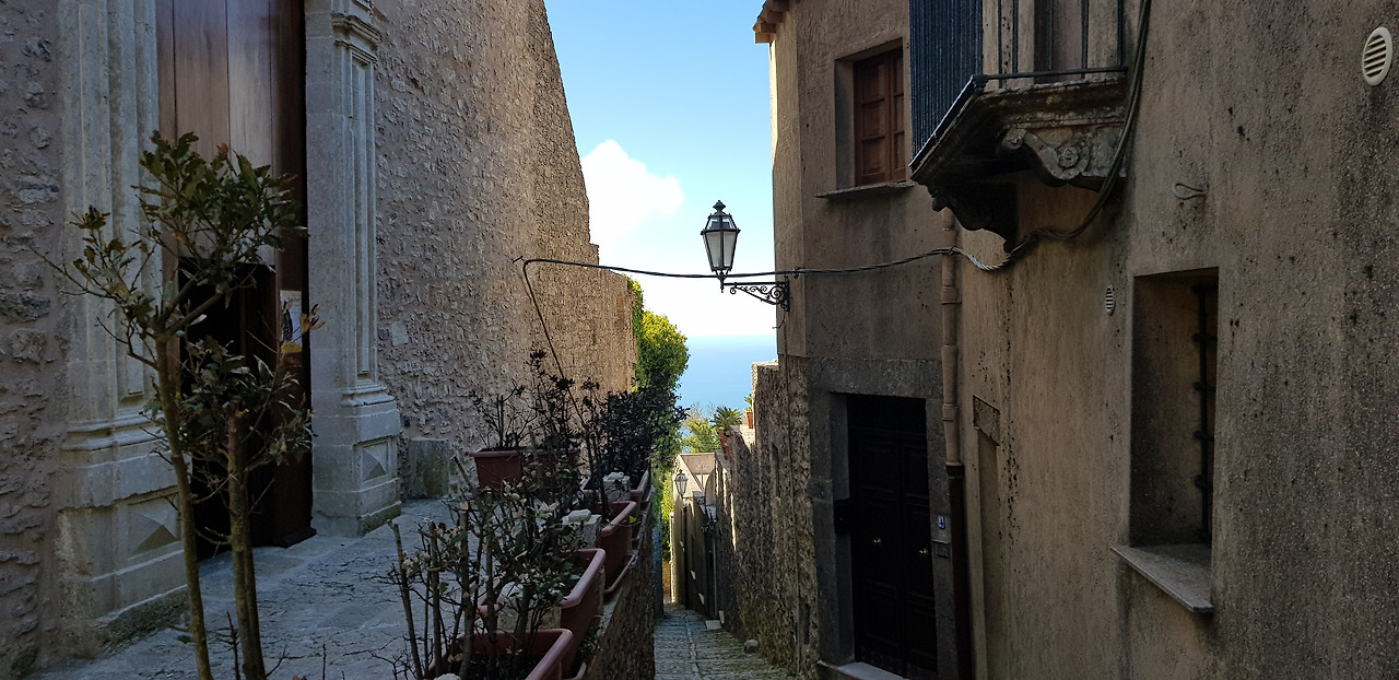 점심을 먹고 마을을 천천히 걸었다. 외벽이 벗겨진 성당, 이끼가 낀 돌담, 골목 사이에 매달린 가로등, 작은 광장을 둘러싼 노천카페와 기념품 가게들. 에리체는 ‘중세 마을’이라는 말이 가장 자연스럽게 어울리는 곳이었다.