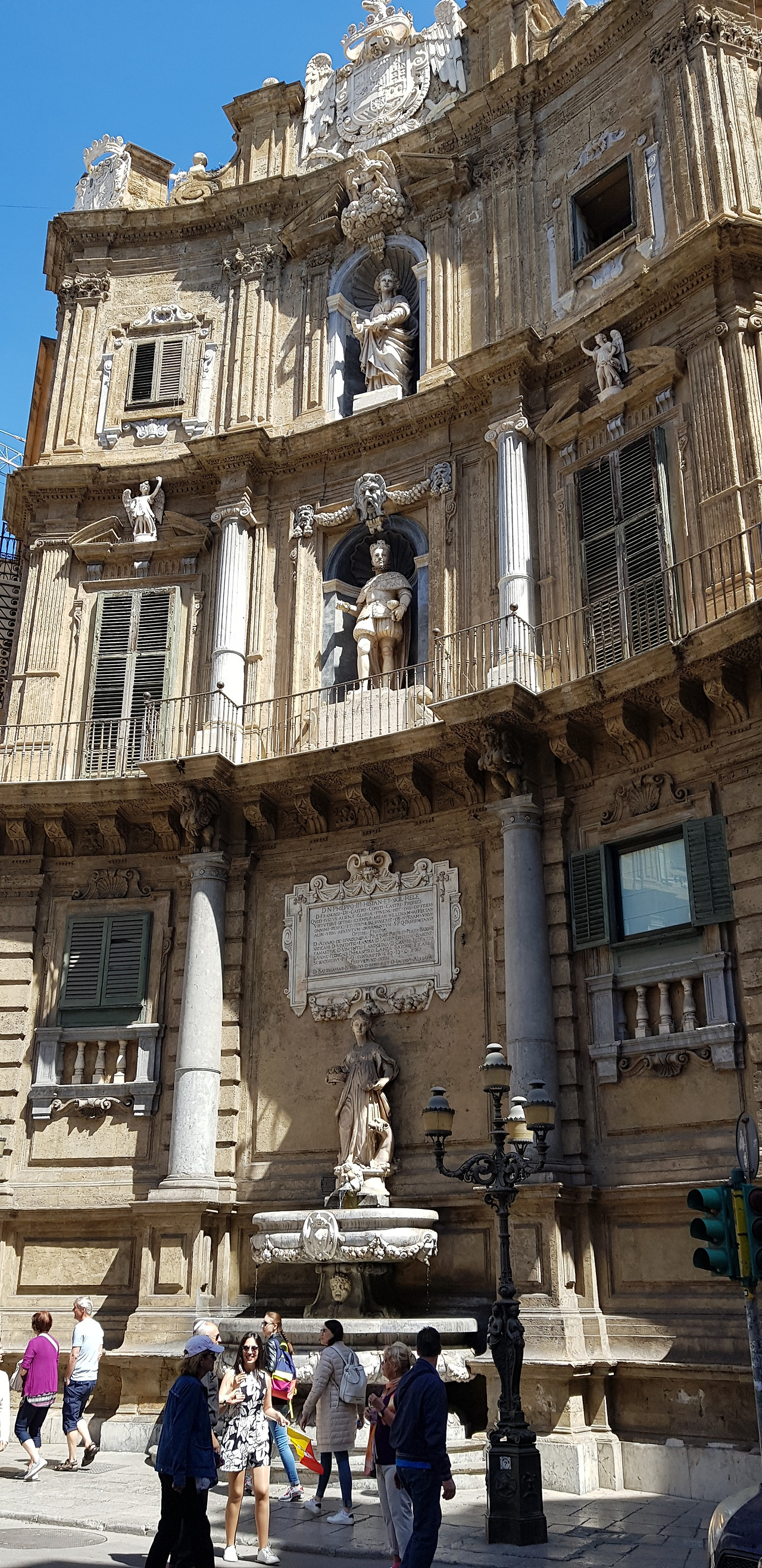 두 개의 큰 도로가 만나는 곳, 콰트로 칸티에서 도시의 또 다른 얼굴을 만났다. 네 개의 모서리에 자리한 바로크 양식의 건물들이 완벽한 대칭을 이루고 있었다. 조각상과 분수, 둥근 곡선들이 만들어내는 풍경은 극적이면서도 정제되어 있었다.