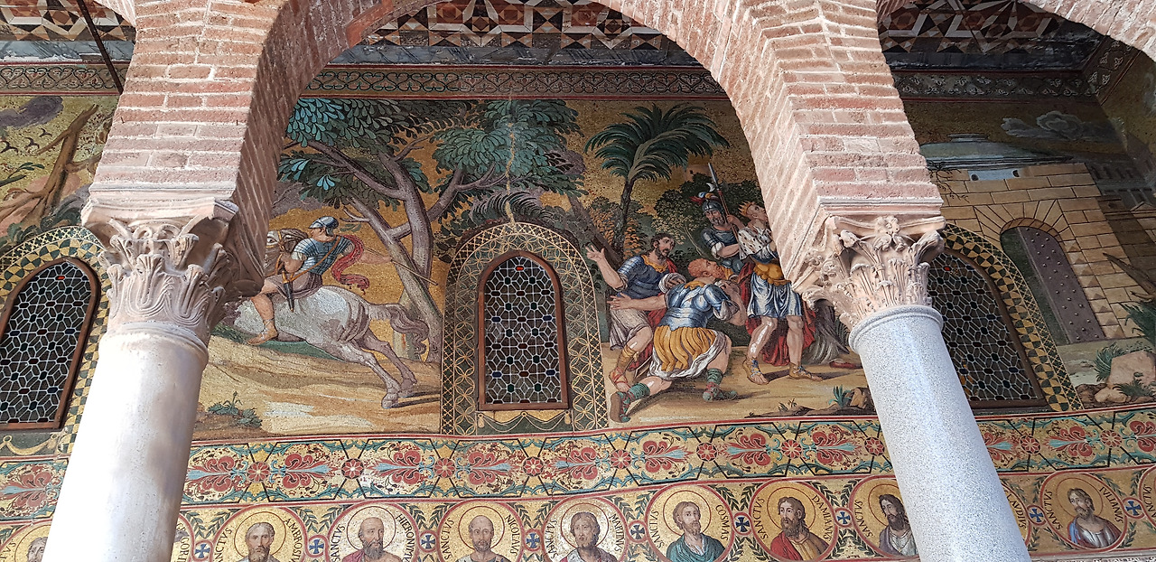 예배당 안으로 들어서는 순간, 시선은 자연스럽게 위를 향했다. 벽면을 가득 채운 황금빛 모자이크가 공간을 압도하고 있었다. 성서의 이야기를 담은 장면들이 눈부시게 빛났다. 지난해 피렌체에서 보았던 성당들의 프레스코화가 차분한 아름다움을 품고 있던 것과는 전혀 다른 세계였다.