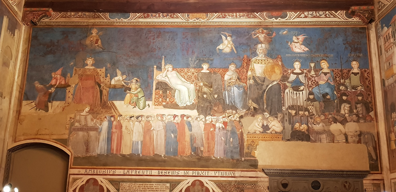 〈선한 정부〉 프레스코화에서, 정의와 조화로 이어진 끈을 시민들이 손에서 손으로 넘기는 장면은 지금 보아도 강한 메시지를 던진다. 좋은 정치란 무엇인가, 공동체는 무엇 위에 서야 하는가에 대한 질문이 벽화 속에 고스란히 담겨 있다. 창 너머로 보이는 실제 시에나의 풍경은, 그림 속 ‘선한 정부가 다스리는 도시’와 크게 다르지 않아 보였다.