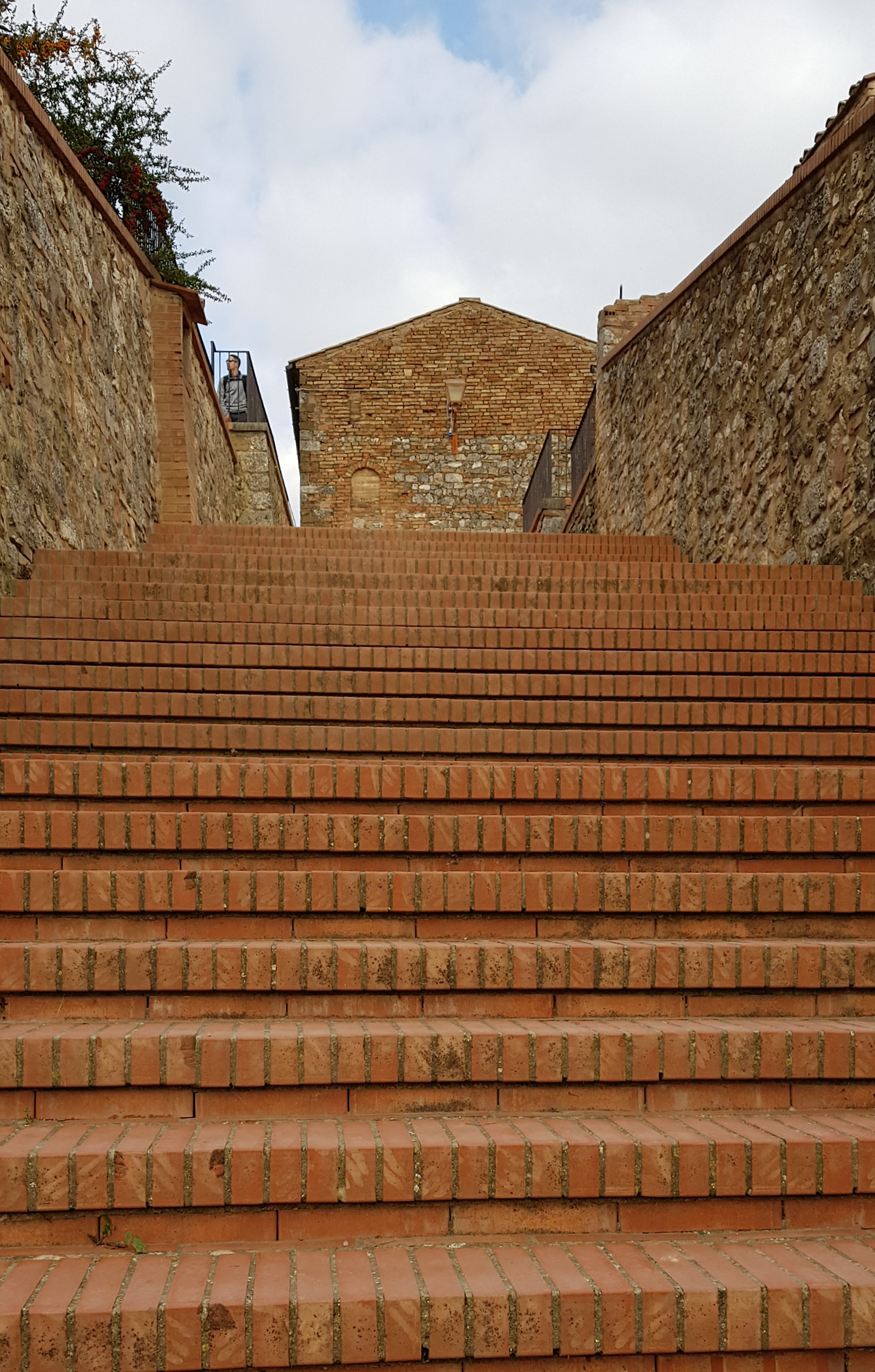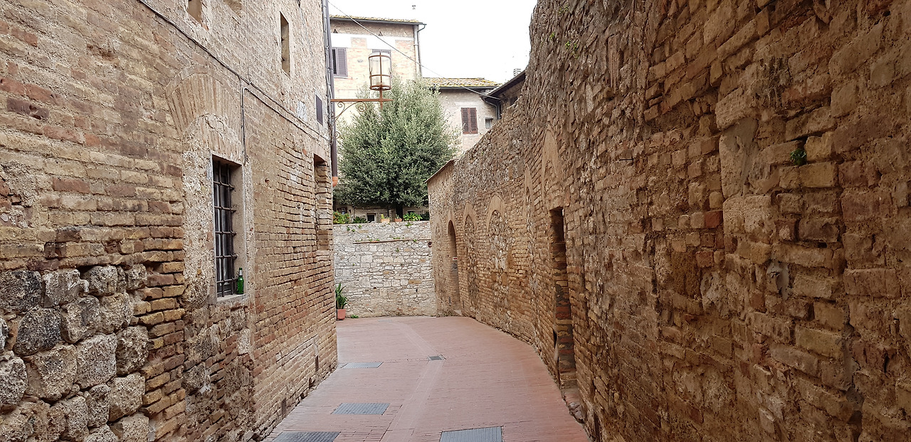 골목을 따라 걷는 것만으로도 산지미냐노는 충분히 매력적이다. 거칠게 쌓은 돌벽과 오래된 계단 사이로 붉은 벽돌과 담쟁이가 어우러진 풍경이 반복된다.