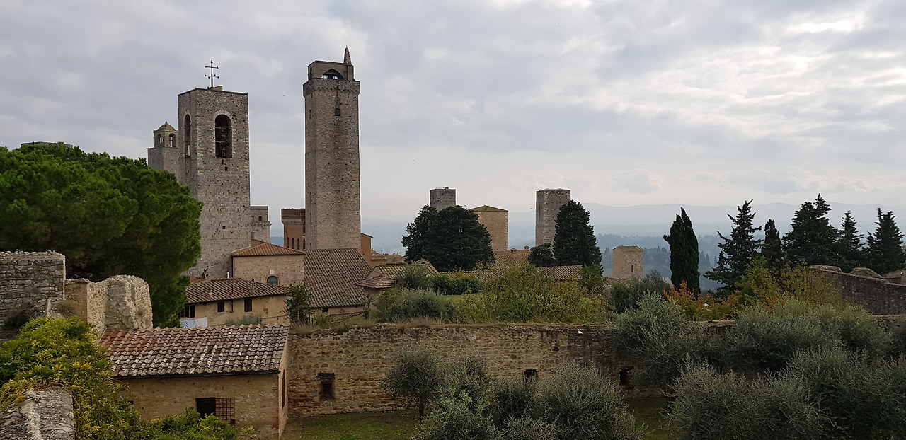 도시의 가장 높은 지점, 라 로카에 오르자 도시 전경이 시원하게 내려다보였다. 마천루처럼 솟은 탑들 너머로 사이프러스와 올리브 나무가 이어지는 토스카나의 전형적인 구릉 풍경이 한눈에 들어왔다.