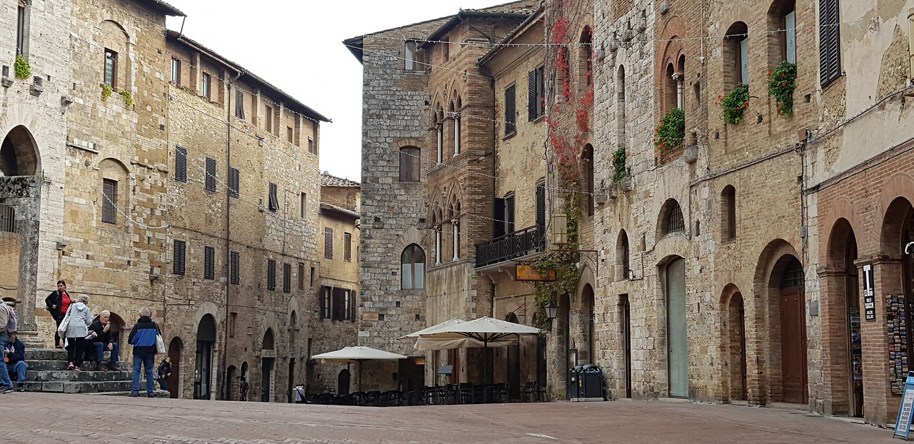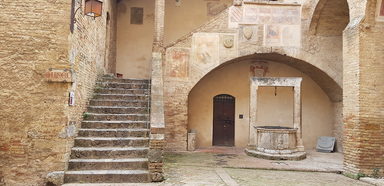 일곱 개의 탑이 둘러싼 두오모 광장에서 포폴로 궁을 먼저 찾았다. 14세기 초에 세워진 이 건물은 현재 시청사이자 시립 미술관으로 사용되고 있다. 옆으로 이어진 높이 54m의 그로사 탑은 산지미냐노에서 가장 높은 탑으로, 전망대 역할을 한다.