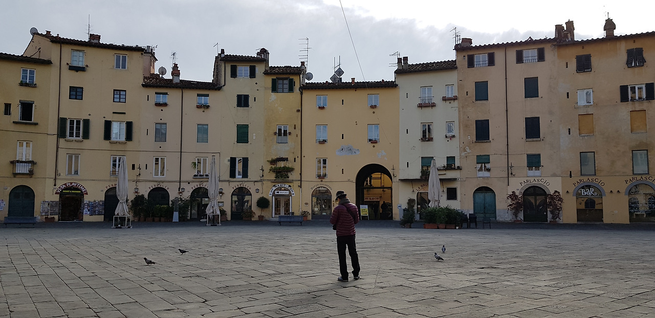 이후 찾은 안피테아트로 광장은 로마 시대 원형경기장 터 위에 만들어진 광장이다. 건물들이 타원형으로 둘러서 있고 위로 올려다보면 하늘마저 타원형이다. 루카의 중심 광장치고는 지나치게 조용했다. 계절과 날씨 때문이었을 것이다.