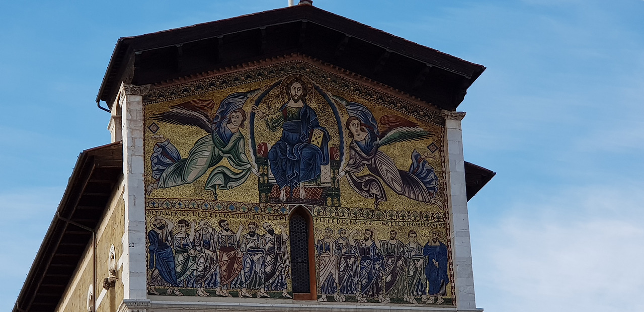 북쪽에 자리한 산 프레디아노 성당은 파사드 상부의 금빛 비잔틴 모자이크로 시선을 끈다. 예수의 승천과 열두 사도가 묘사되어 있고, 가롯 유다 대신 사도 바오로가 포함되어 있다.