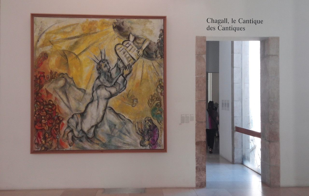 샤갈은 성당을 장식할 그림을 그리고 싶어 했다. 그는 구약성서 ‘아가서’를 주제로 한 작품을 니스 인근의 방스에 있는 성당에 걸고자 했으나, 지나치게 선정적이라는 이유로 거절당했다. 이를 안타깝게 여긴 당시 문화부 장관 앙드레 말로의 제안으로 이 미술관이 탄생하게 되었다고 한다.