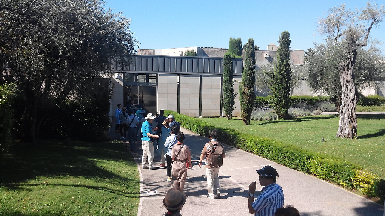 우리는 니스에 도착하자마자 먼저 샤갈 미술관을 찾았다. 외관은 현대적이면서 단정했고, 중앙에는 넓은 잔디와 연못, 야자수가 어우러진 정원이 조성되어 있었다. 정원 연못가에는 대형 모자이크 <예언자 엘리야>가 전시되어 있었다.