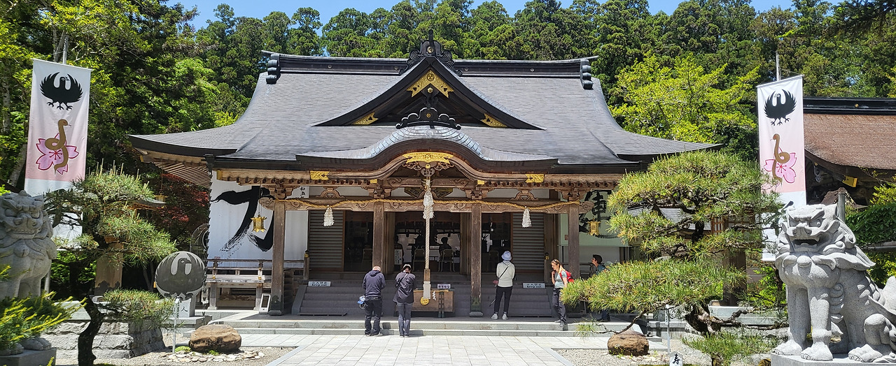 경내 곳곳에서 삼족오 야타가라스 문양을 볼 수 있다. 길을 인도하는 신의 사자, 순례자들에게는 더없이 어울리는 상징이다.