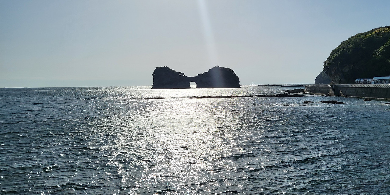 해 질 무렵, 다시 시라하마 해변에 섰다. 고운 백사장 위로 바닷바람이 스쳤다. 돌아오는 길에 엔게츠도 앞에서 잠시 발걸음을 멈췄다. 바위 가운데에 둥근 구멍이 뚫려 있다고 하여 그렇게 이름 붙은 곳. 특히 바위의 공동을 통해 바라보는 달의 풍경이 일품인 곳. 파도가 만든 시간의 흔적을 바라보며, 오늘 하루를 조용히 정리했다.