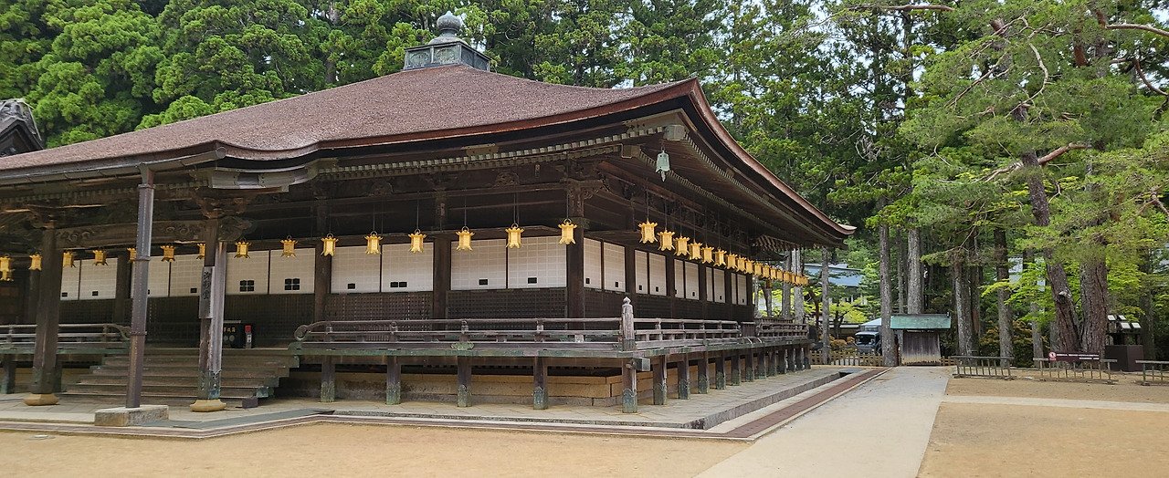 고야산 성지에 들어섰음을 알리는 다이몬을 지나, 우리는 먼저 단조가란을 찾았다. 이곳은 고보 다이시가 종파의 본부를 세우기 위해 첫 삽을 뜬 장소로, 고야산 전체를 상징하는 공간이다.