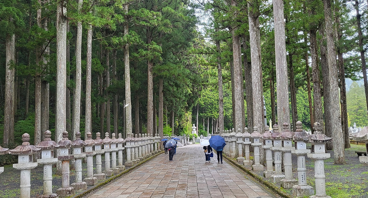 흐린 날씨와 빗속의 풍경이 겹쳐 오쿠노인의 분위기는 더욱 묵직했다. 걷기의 끝자락에서 우리는 성역의 깊이를 체험했다.