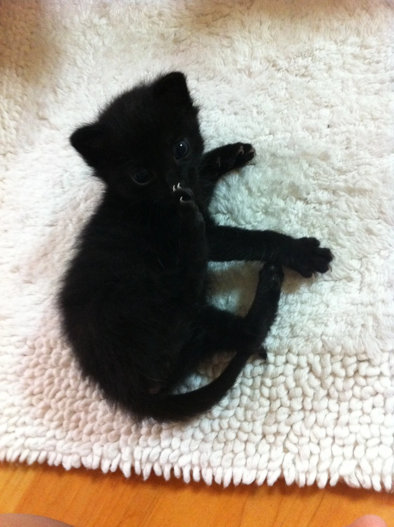 새까만 털, 베이비 블루의 눈 색, 포도색 입과 발바닥. 세계 곳곳에 있는 검은 고양이들에 대한 미신은, 아마도 그들이 너무 매력적이라 홀리는 듯한 기분이 들어서 생긴 것이라고, 나는 2011년 9월 집 옆 교회 앞에 박스 안에 버려져 있던 작은 고양이 사진을 보고 생각했다.