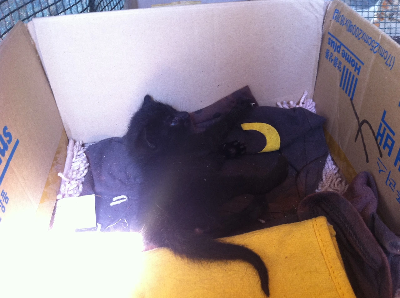 까맣고 동글동글한 생김새가 어쩐지 고양이보다는 곰 같다는 생각이 들어서인지 그 녀석은 “곰돌이”라 불리며 우리 집에서 입양 갈 곳을 찾았다. 코코가 다른 고양이들을 워낙 싫어했던 터라, 다묘는 꿈도 못 꾼다는 사실을 알아서 우리가 키울 수는 없었다. 허나 그대로 두면 죽을 것이 분명했기에 일단 우리 집에서 흔히 말하는 “임시 보호”를 한 것이다. 곰돌이는 우리가 임시 보호한 최초의 고양이었다. 이 무지막지하게 귀여운 녀석은 당시 생후 2-3개월 정도였고 다행히 건강에는 이상이 없었다. 가정 또는 가게에서 분양받았는지 아니면 길냥이 어미를 두었는데 사람 눈에 띄어 누가 데리고 갔다가(흔히 말하는 냥줍) 못 키우겠어서 버린 건지 알 수는 없지만 한창 엄마 고양이 곁에서 클 시기에 녀석은 엄마와 떨어졌고, 한 번 버려졌으며, 우리 집에서 또 다른 집으로 이동해야 하는 처지에 놓였다.