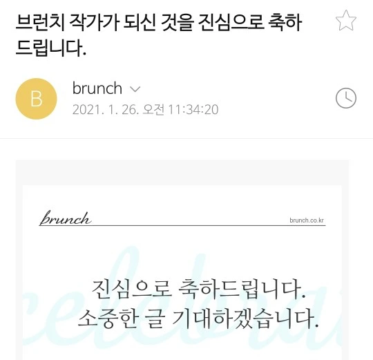'엄마! 브런치 작가 됐어!' 막내가 장난치는 줄 알았다. 내가 브런치 작가 신청서를 내고, 그 결과를 기다리고 있는 걸 막내는 알고 있었다. 지난 일요일, 작가 소개와 앞으로의 글쓰기 계획을 써서 식구들 앞에서 어떠냐고 물어봤었다. 모두가 좋다는 반응이어서, 좋은 소식이 올지도 모른다고 은근히 기대하고 있었지만. 이렇게 빨리 결과가 나오리라곤 생각지 않았다. 그런데!