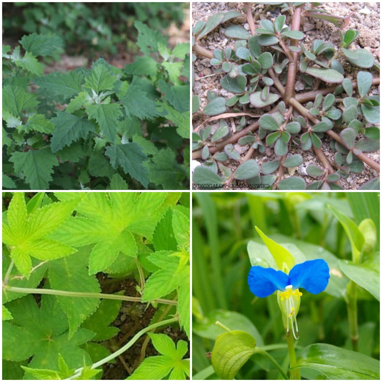 ▲ 시계방향으로 명아주, 쇠비름, 닭의장풀, 환삼덩굴