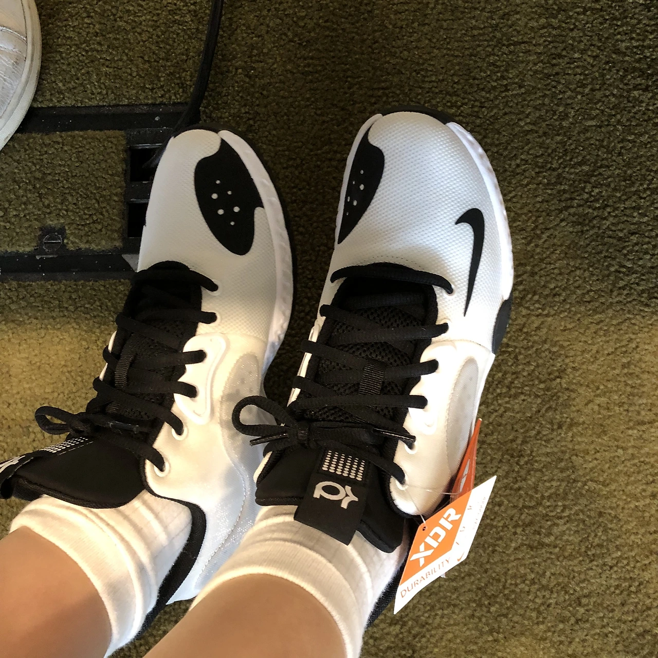 그러다 아주 오랜만에 파트원 모두가 회사에 출근한 어느 날. 주간 회의에 농구화 한 켤레가 등장했다. 원래는 다른 선배를 꼬시기 위해 동호회 초대 (예비)회장님이 준비한 선물이었다. 그러나 선배에게는 운동화가 너무 컸고, 운동화는 내 앞으로 왔다. kd, 케빈 듀란트 라인의 흰색 농구화. 250mm.