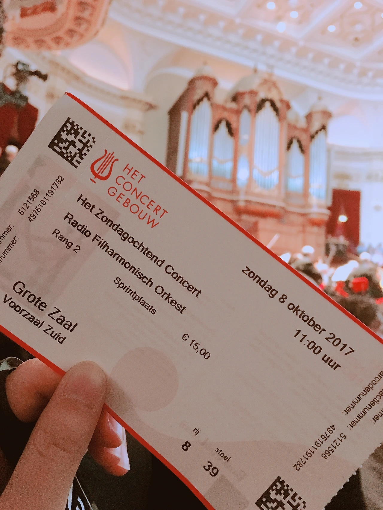 마지막은 정식 공연 관람이다. 로얄 콘세르트허바우를 가장 잘 즐길 수 있는 방법이다. 로얄 콘세르트허바우의 음향 시설은 세계적인 수준이다. 리하르트 슈트라우스는 “매우 훌륭하고 활기 넘치며 열정적이다”라며, 생동감과 균형을 로얄 콘세르트허바우의 특징으로 꼽았다고 한다. 음향 이외에도 고전적인 인테리어 덕에 콘서트 관람 체험에 고풍스러움이 더해진다. 1층 의자는 단층이 없지만 무대가 충분히 높아서 기둥에 가리지만 않는다면 어느 곳에서도 무대를 조망할 수 있다. 또한 음향시설이 모든 좌석에서 동등하게 들리도록 설계되었기 때문에 어느 좌석을 선택해도 크게 다르지 않은 음향을 경험할 수 있다. 티켓 예매 사이트에서 예상 뷰를 섬세하게 보여주므로 시야와 가격을 고민하여 선택하면 된다. 합창석도 추천한다. 오케스트라를 가장 직접적으로 볼 수 있는 좌석이다. 악기 연주에 관심이 많고 지휘자의 앞모습을 보고 싶다면 적극적으로 고려할만 하다.