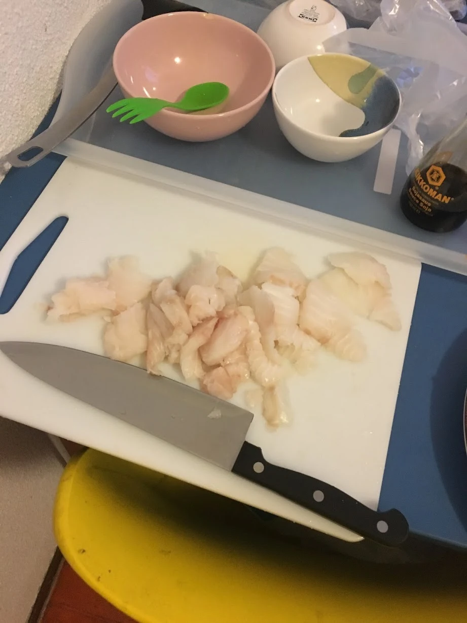 사람은 6명, 손은 12개. 요리에 능숙한 손은 하나도 없었지만 그날은 모두 일심동체가 되어 고맙게도 이 일을 벌인 나의 지휘를 따라주었다. 메뉴는 닭볶음탕, 모듬전(두부, 대구, 애호박, 가지), 동그랑땡, 잡채. 모두 백종원 혹은 황금레시피였다. 12개의 손 중 칼질에 조금이나마 익숙한 손은 2개여서 그 주인인 내가 동그랑땡에 들어갈 야채를 다지고, 잡채에 들어갈 야채는 길게 썰고, 대구살은 포를 떴다.