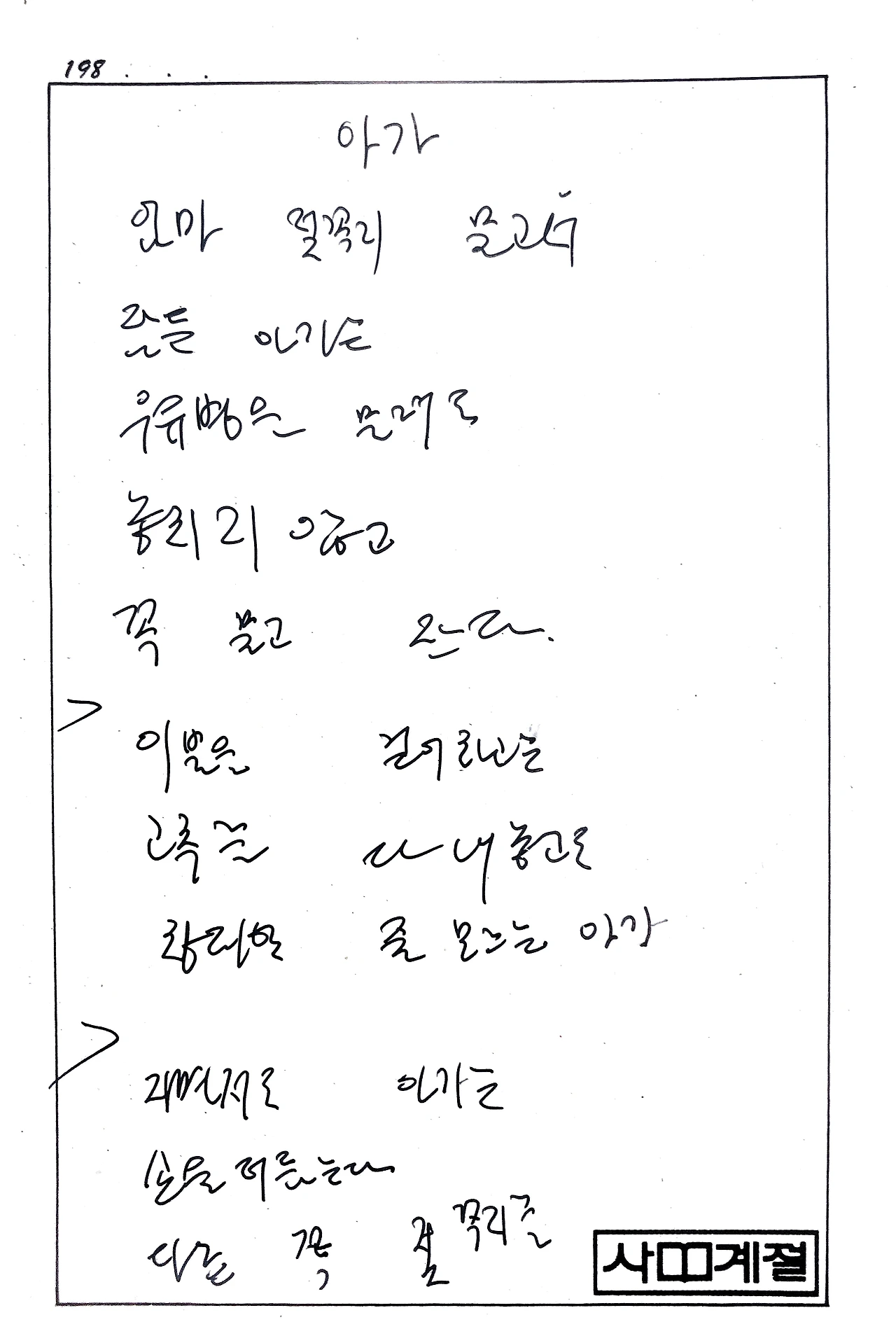 위의 시 “아가”도 아마 그 이후에 집에서 그냥 끄적여 본 글일 것 같다.