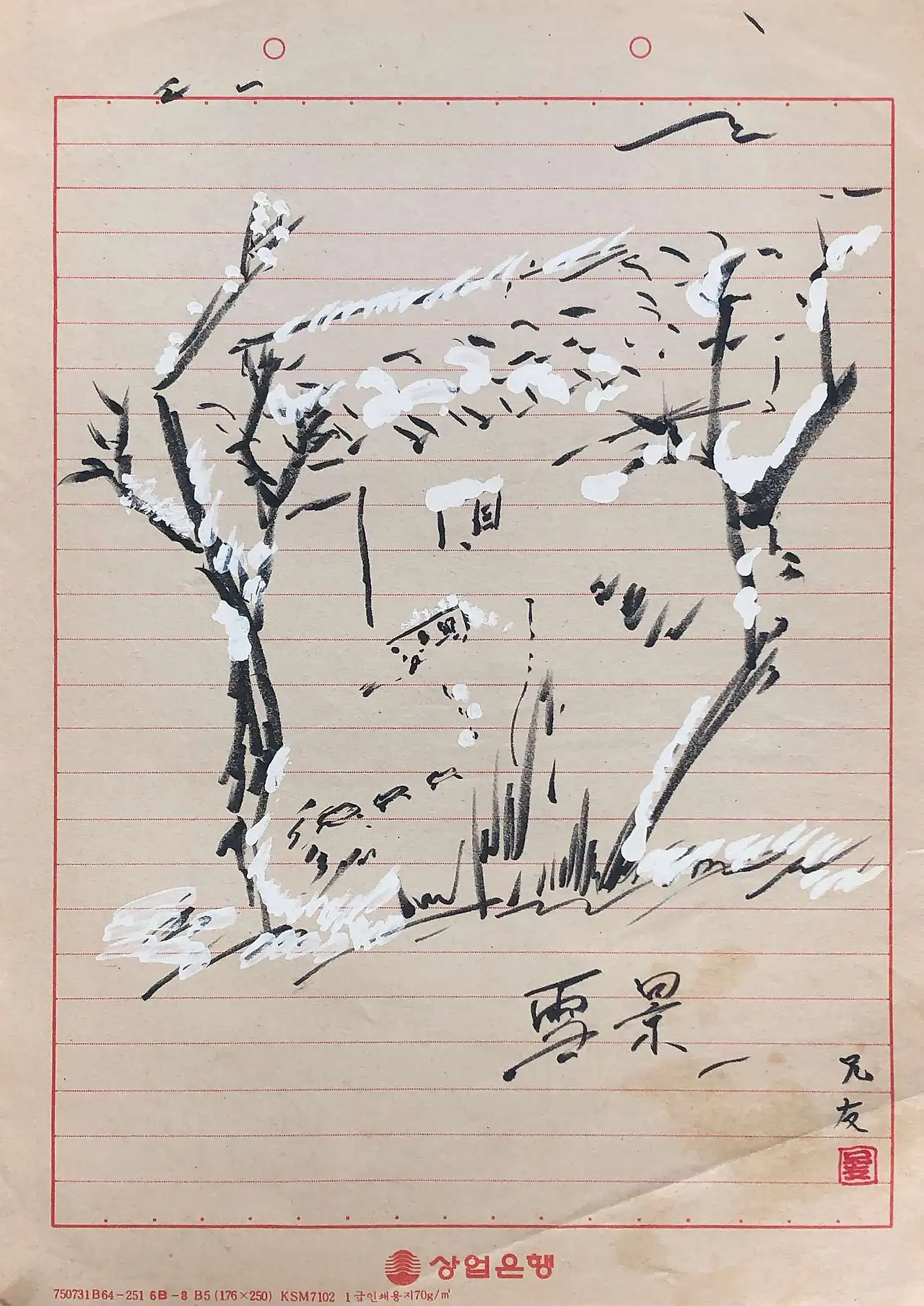 이 시가 적힌 메모지에는 ‘상업은행’이라는 이름이 찍혀 있다.