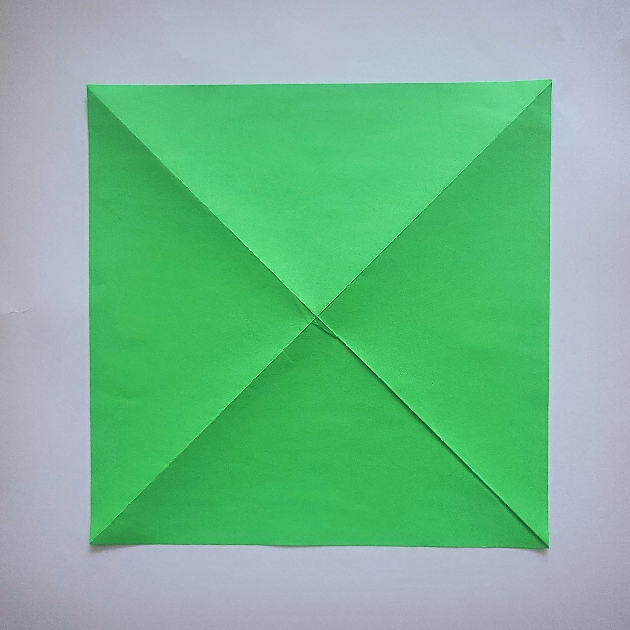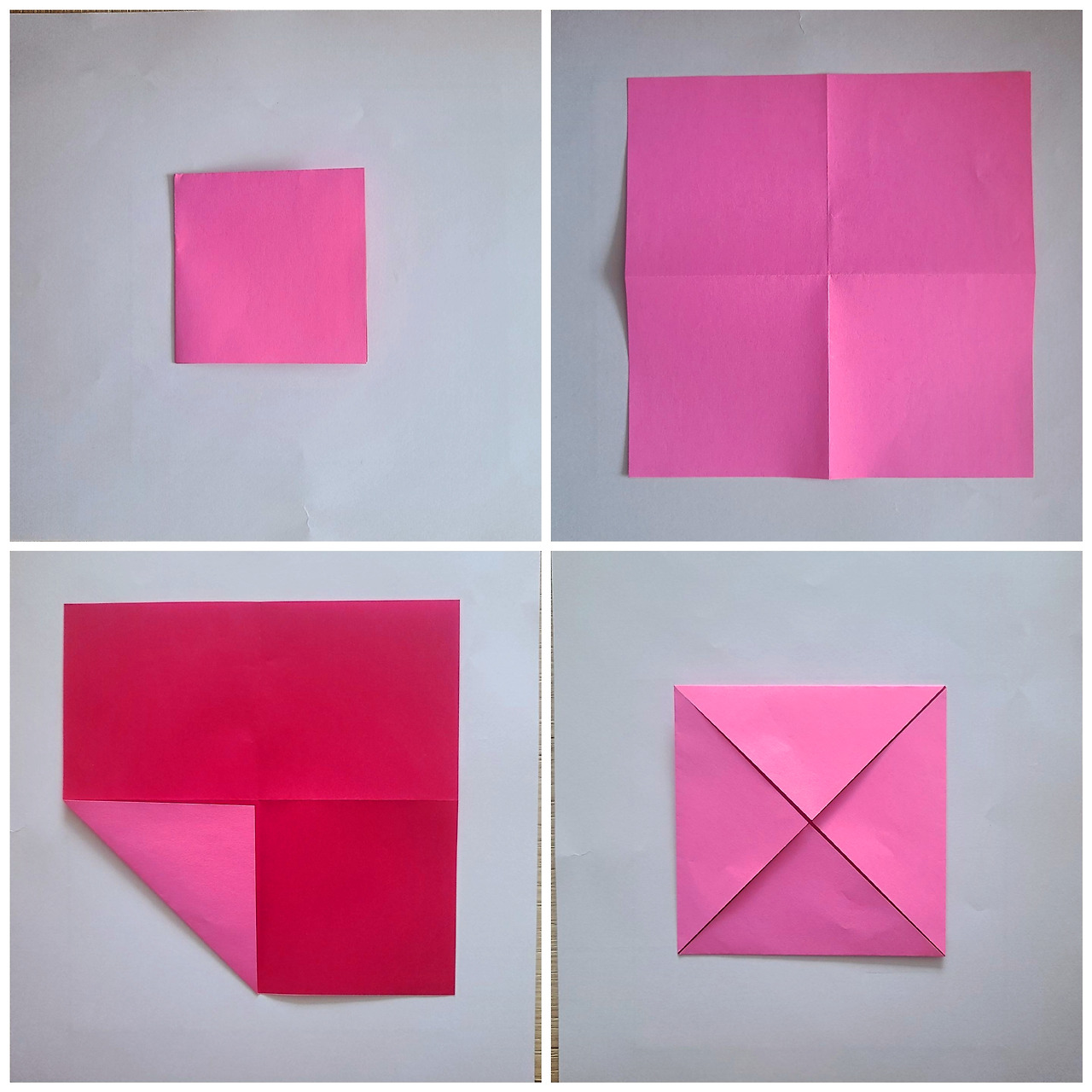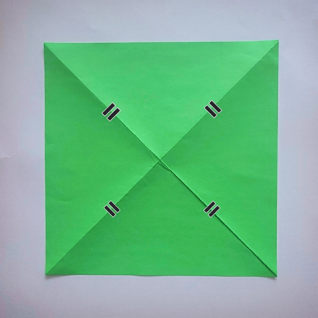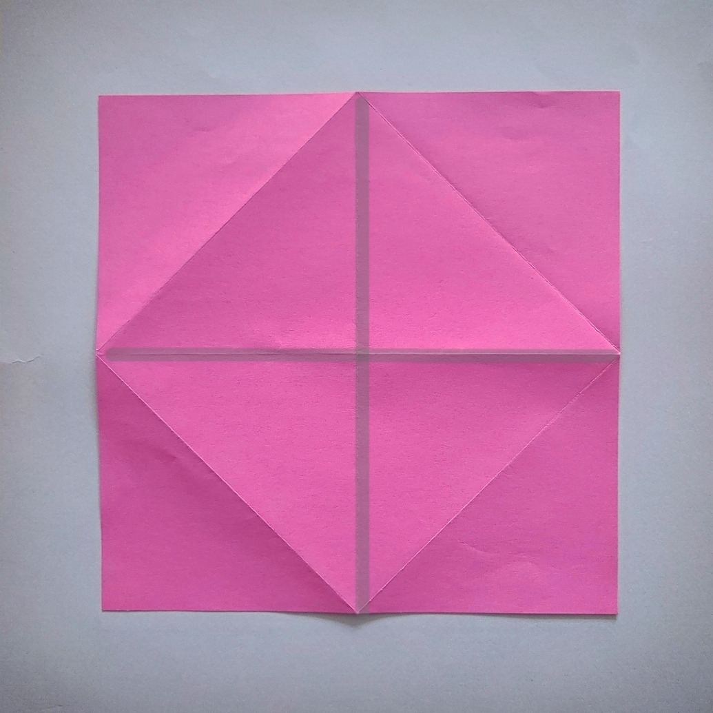 3) 네 모서리를 중심에서 만나도록 접어요.