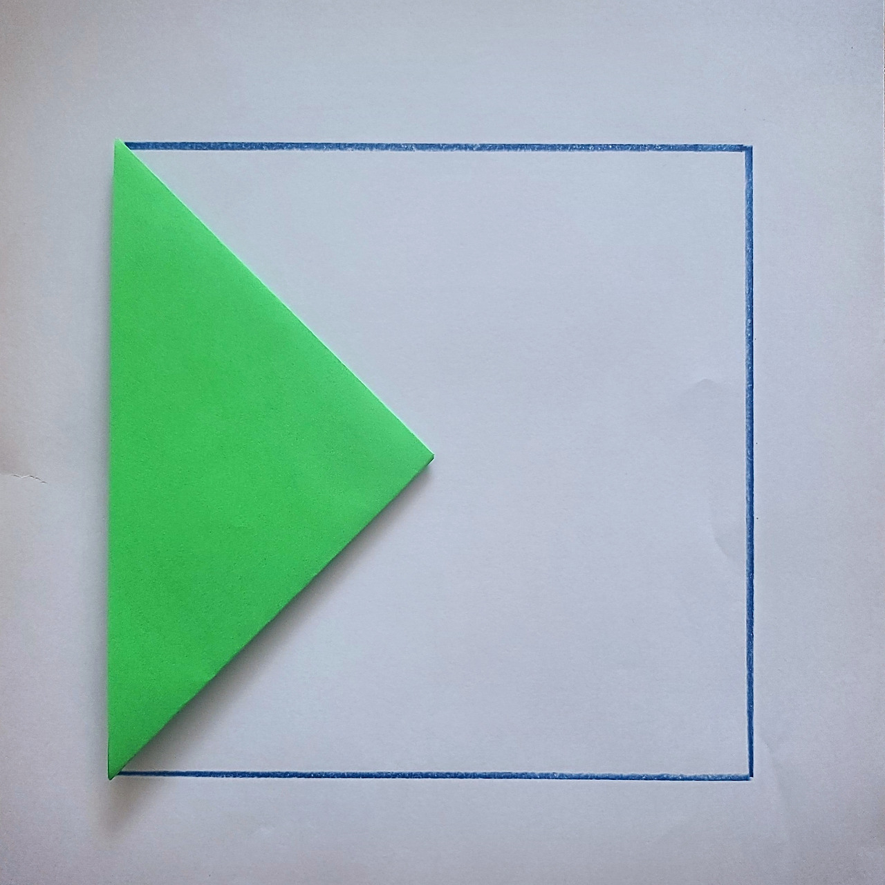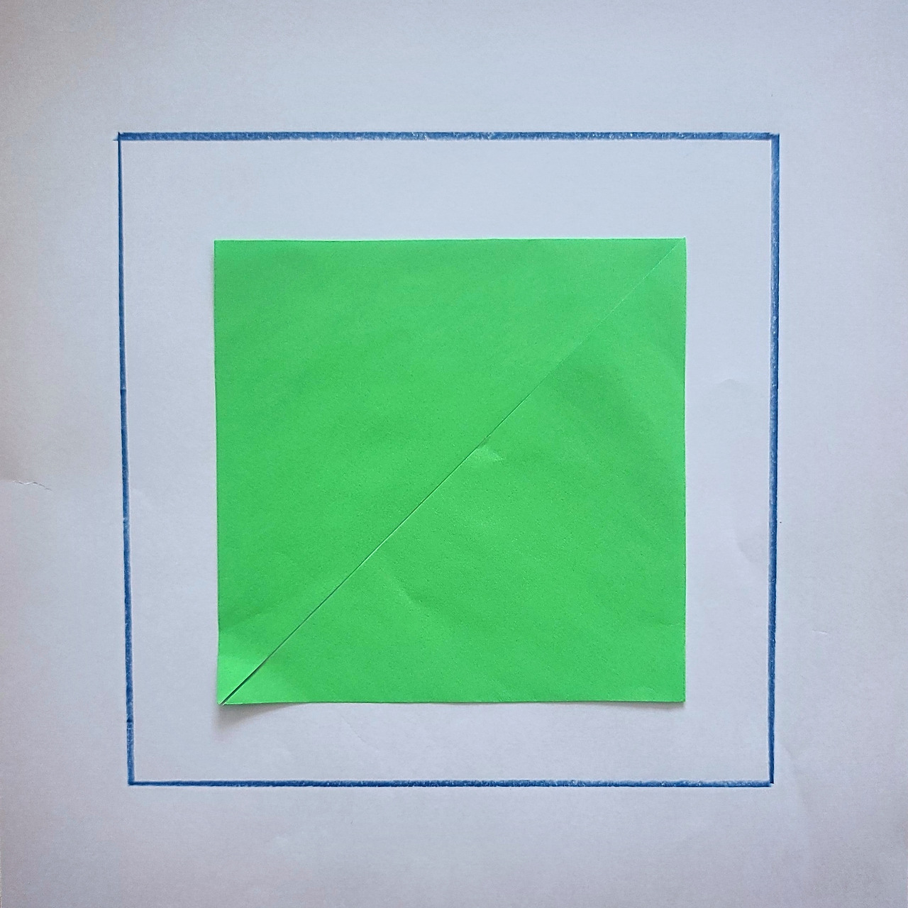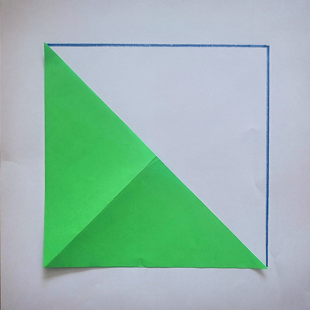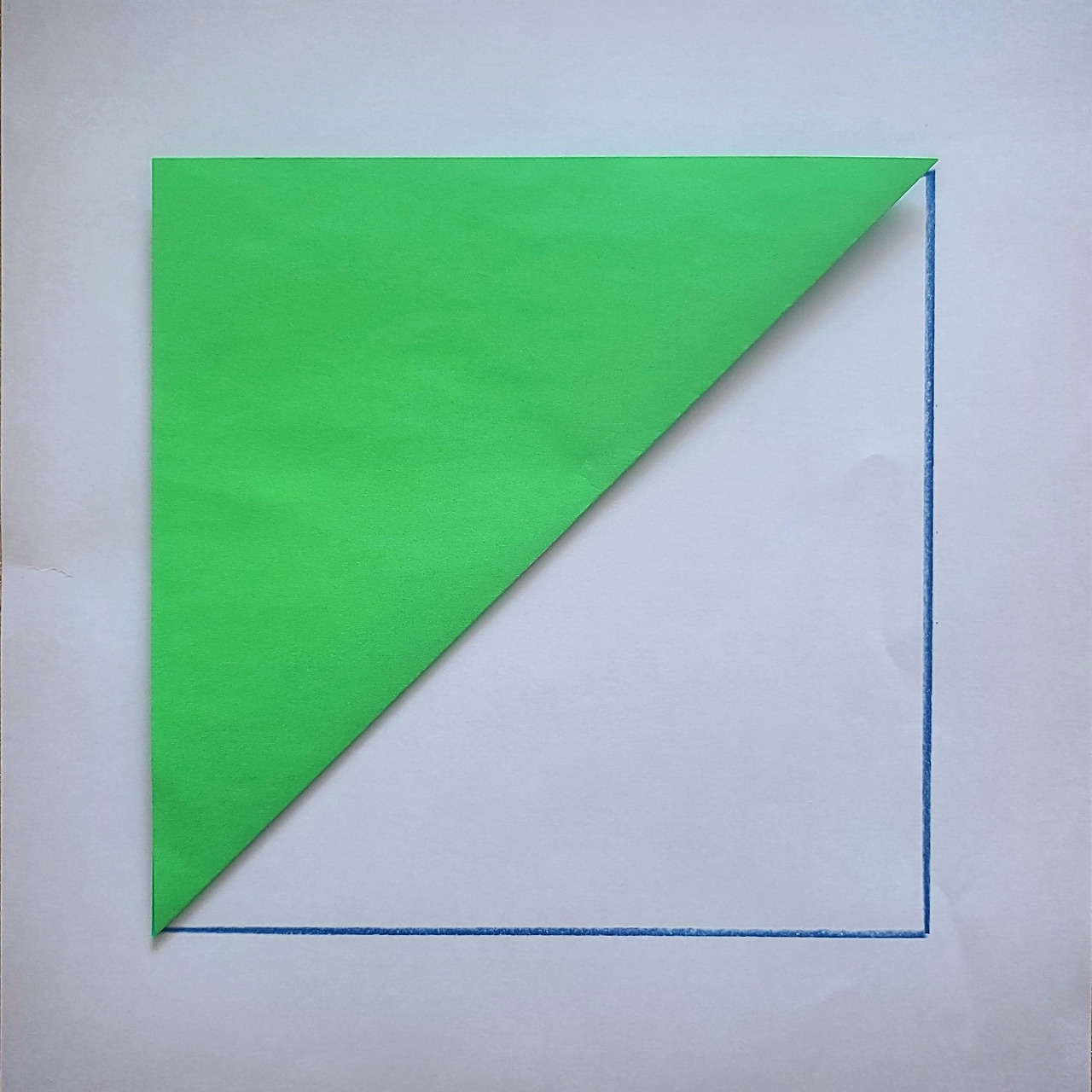 색종이를 절반으로 나누는 방법이 하나 더 있죠.어릴 때 종이접기 좀 해봤다 하는 분들은 감이 오실 거예요. 이렇게 접어도 절반이 되지요.