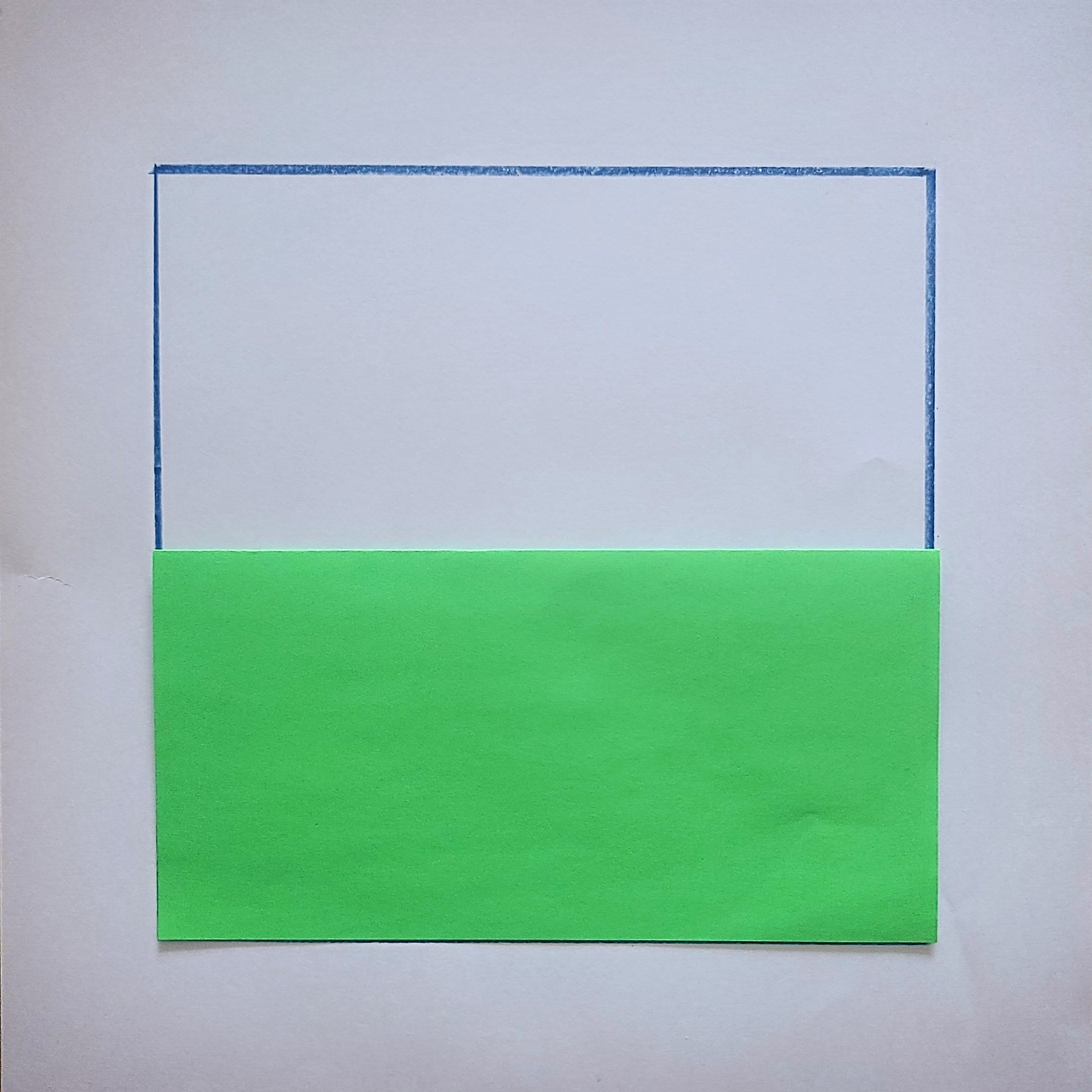 이렇게 하면 넓이는 반이 되지만 정사각형이 아니죠. 우리는 정사각형을 만들어야 합니다. 한번 더 접어서 정사각형을 만들까요?