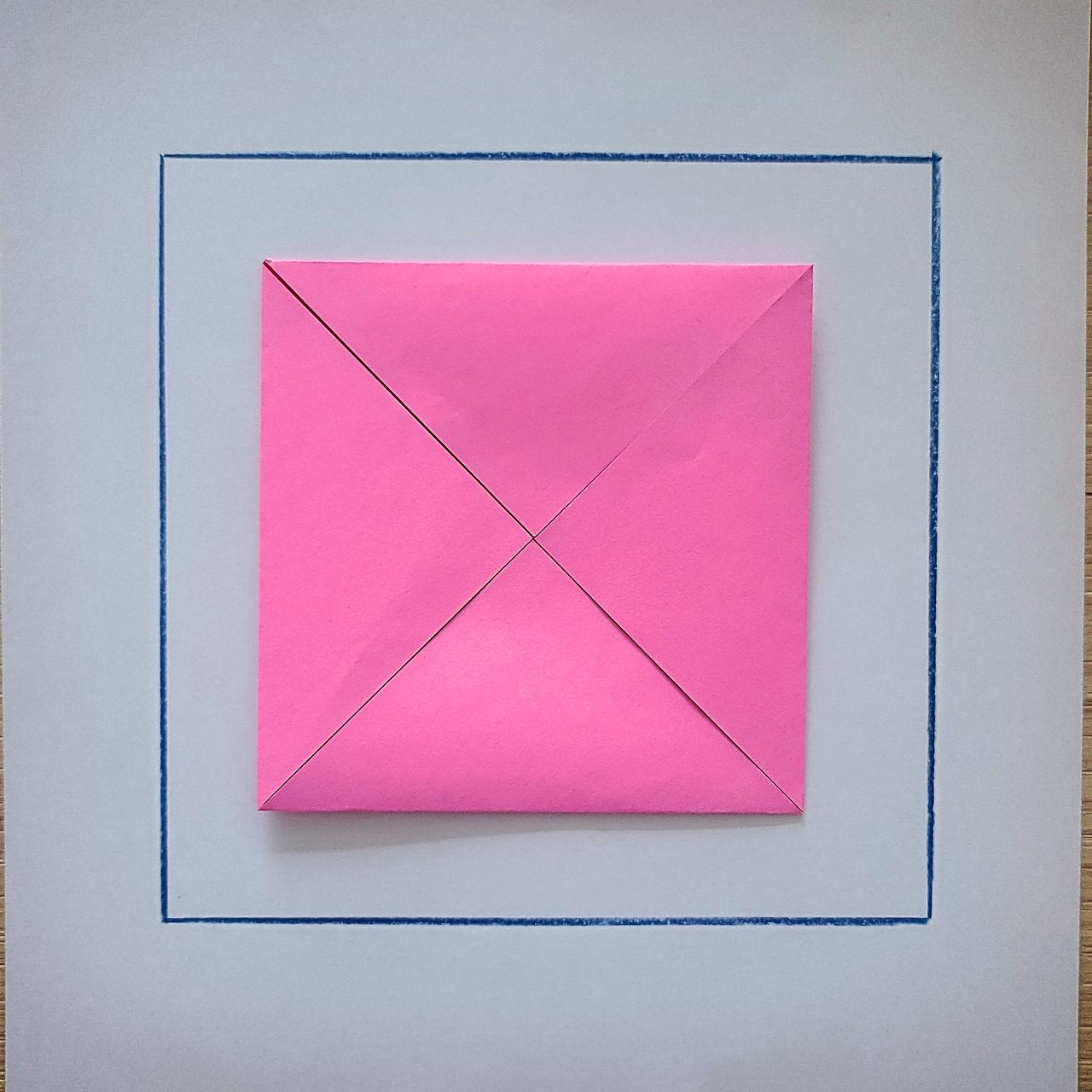 이런 접기 방법을 전문용어로 '방석접기'라고 하는데요. 방석접기를 하고 보니, 어느새 정사각형이 됐습니다.