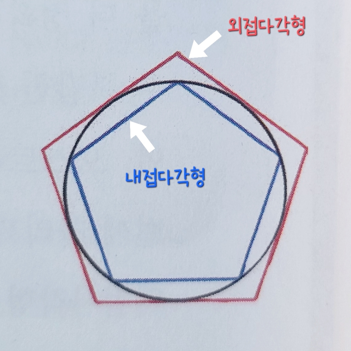 내접다각형의 둘레 < 원둘레 < 외접다각형의 둘레