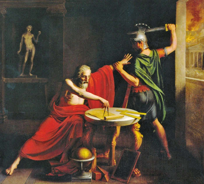그 당시에는 계산기도 없고 컴퓨터도 없고 그 흔한 펜과 종이도 귀했어요. 그런 척박한 환경에서 정96각형까지 그리다니, 원주율을 향한 아르키메데스의 집념이 느껴지시나요. 로마가 침략했을 당시, 병사가 그의 집안에 들어와 바닥에 그린 원을 밟자 아르키메데스가 호통을 쳤다고 하죠. "내 원을 밟지 말라!!!!" 화가 난 병사는 그를 그 자리에서 칼로 무참히 찔렀답니다. 바닥에 그려진 그 원은 단순한 도형이 아니었어요. 아르키메데스의 피, 땀, 눈물로 가득 찬 그의 인생이었을겁니다.