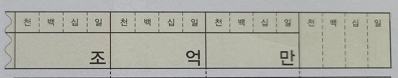 처음 끊은 부분부터 만, 억, 조 순서로 적습니다.