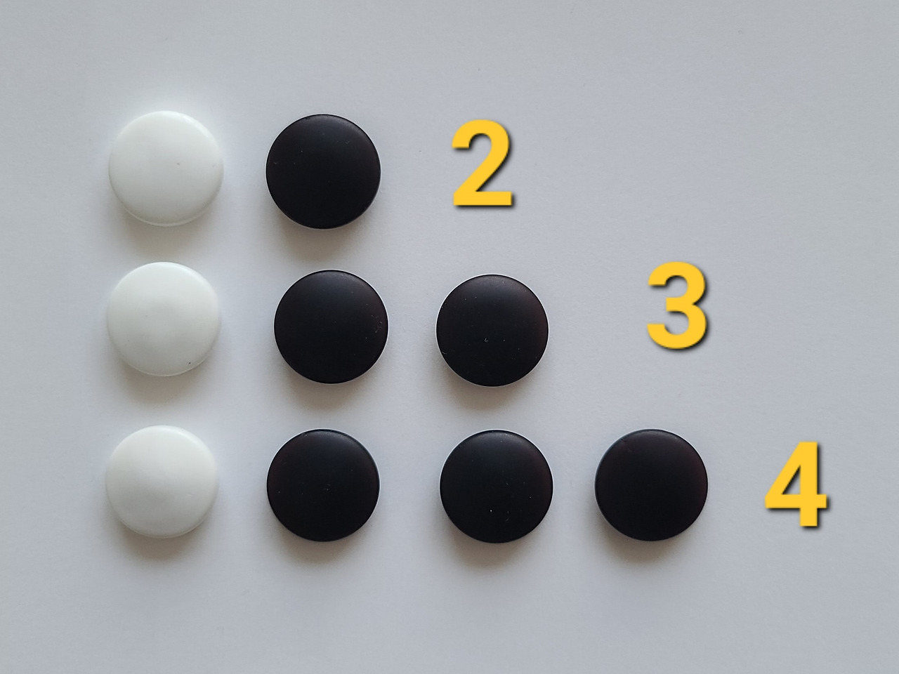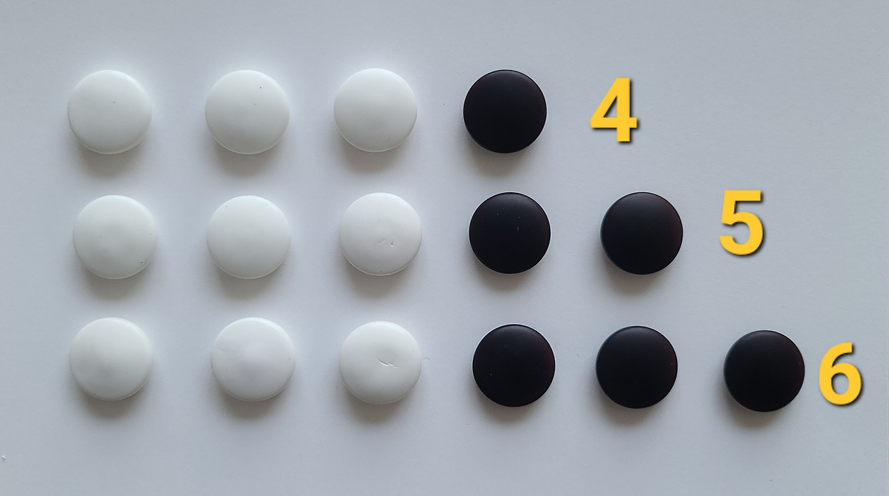 눈치채셨나요? 상대가 수를 몇 개 말하든 일정하게 유지하려면 둘이 합쳐 '4개'가 되어야 합니다. 3,5,6개는 상대가 몇 개를 말하느냐에 따라 좌우되기 때문에 안 돼요. 무조건 한 텀에 둘이 말하는 수가 4개가 유지되도록 해야 내가 원하는 대로 게임을 끌고 갈 수 있습니다.