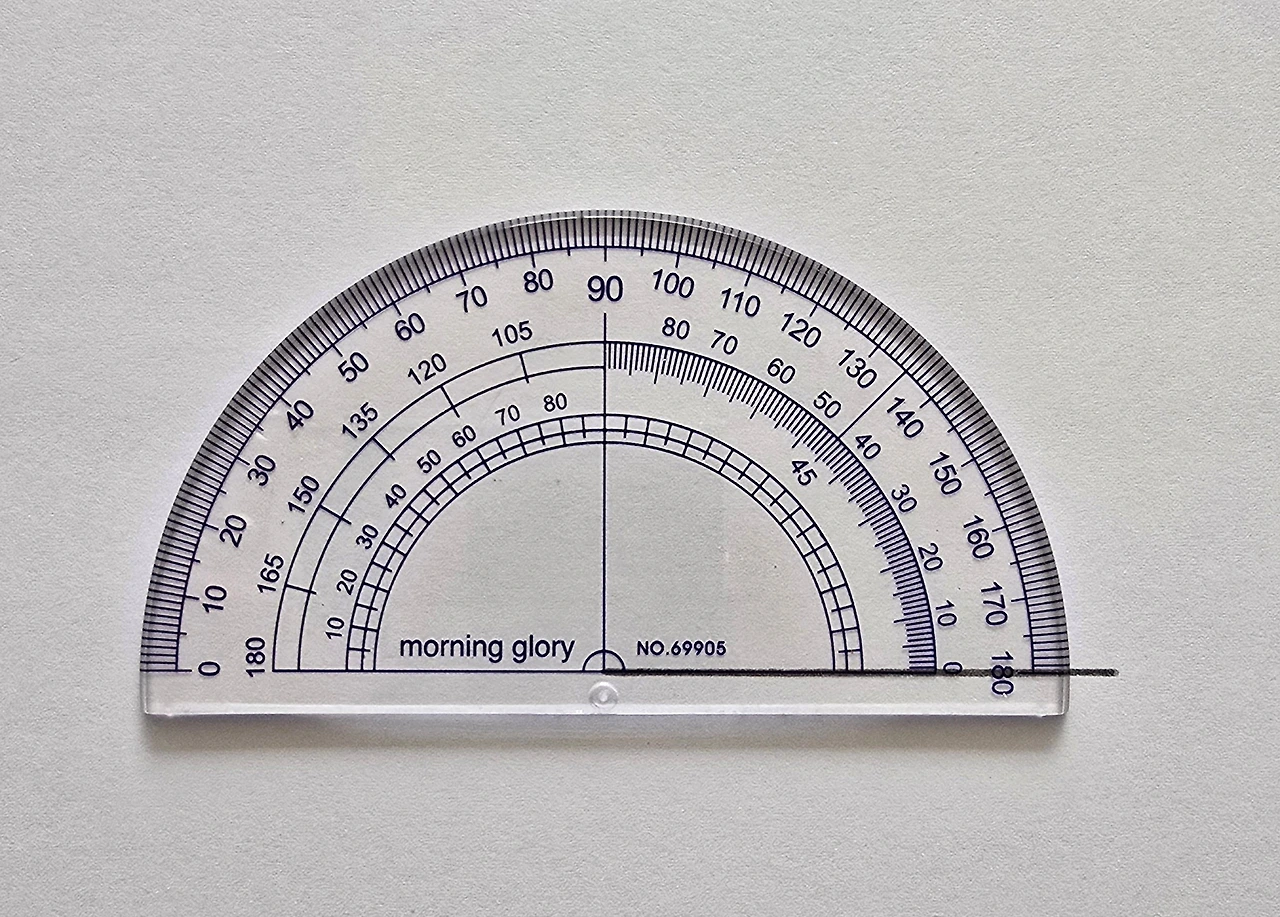 고대 그리스 시대에도 지금처럼 각의 개념은 있었지만 각도기는 없었어요. 그런데 각도기 없이도 정확하게 그릴 수 있는 각도가 있습니다. 바로 0°, 90°, 180° 인데요. 0°와 180°는 자만 있으면 아주 쉬워요. 두 직선을 포개거나 평평하게 펼치면 되니까요. 그런데 각도기가 존재하지 않았던 그 옛날에도 90°를 정확히 그릴 수 있었답니다. 90°에만 특별히 '직각'이라는 이름을 붙여준 이유예요.우리도 각도기 없이 직각을 그려봅시다.