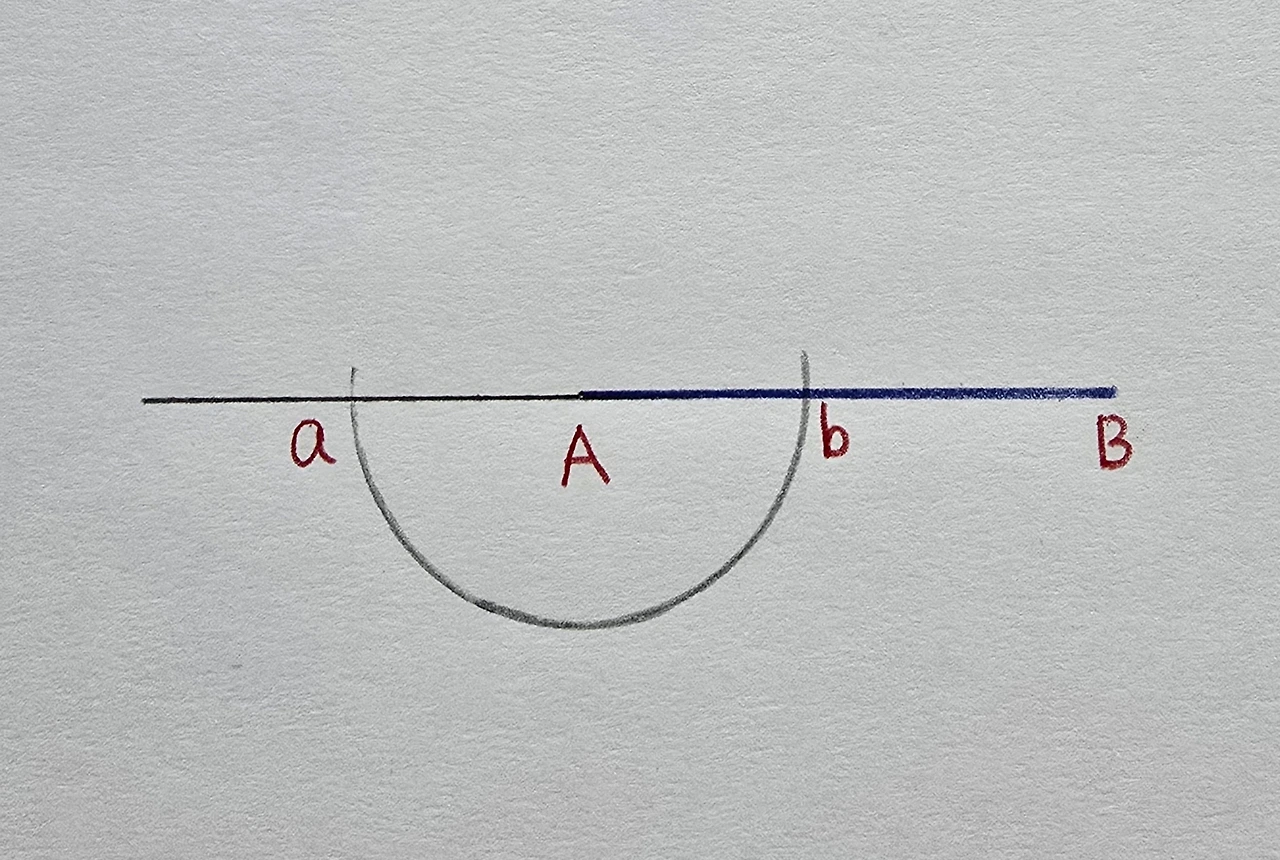 일단, 선분 하나를 긋습니다. 선분 AB라고 합시다.