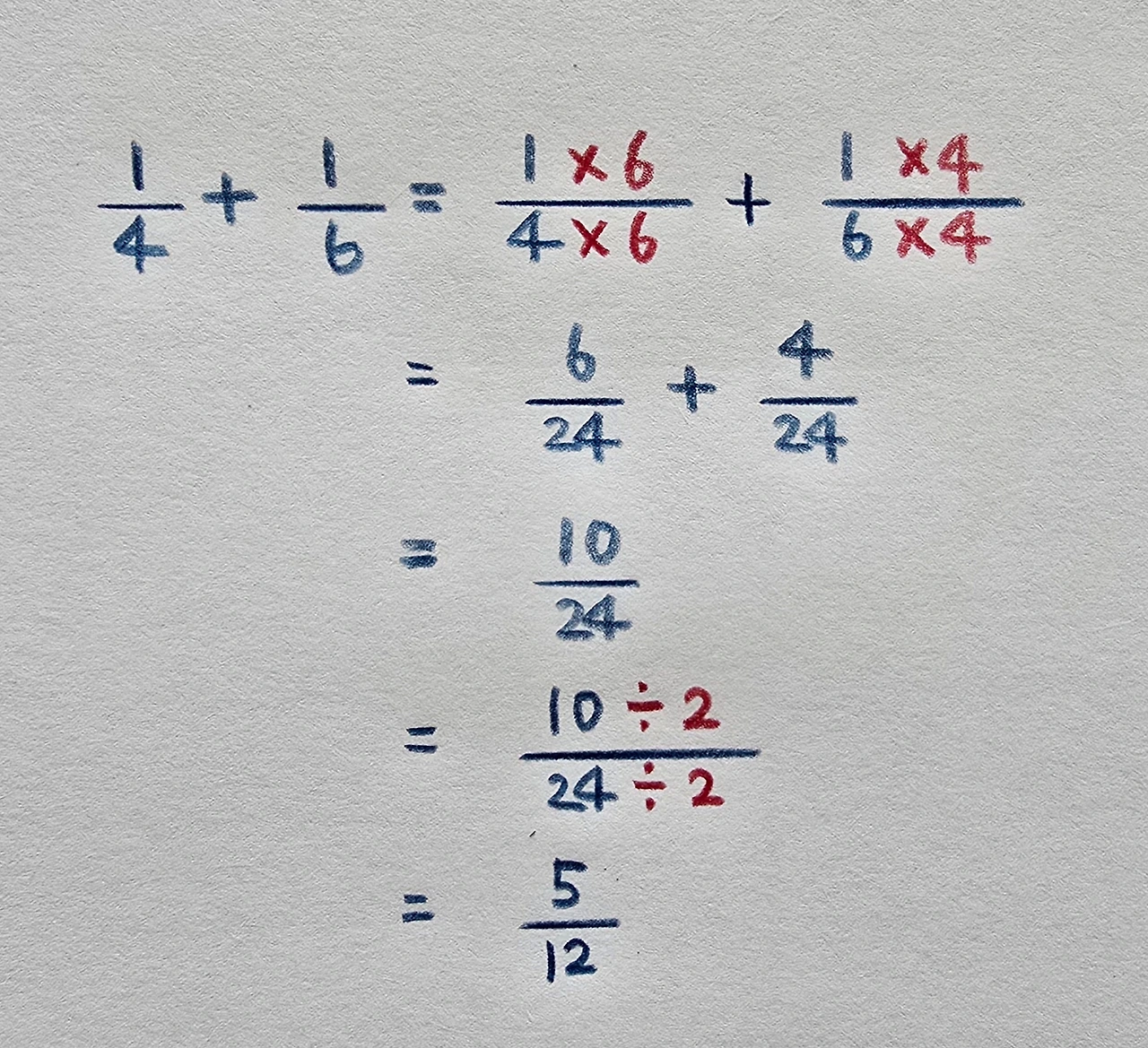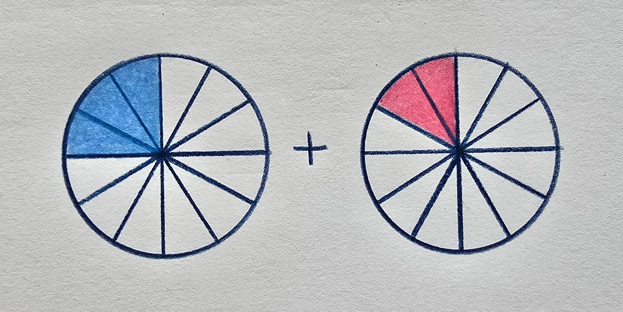 ¼은 1/12이 3개, ⅙은 1/12이 2개니까 ¼+⅙은 1/12가 5개, 5/12입니다.