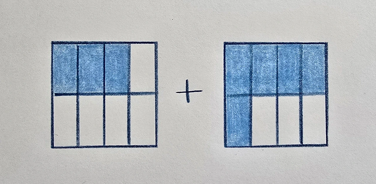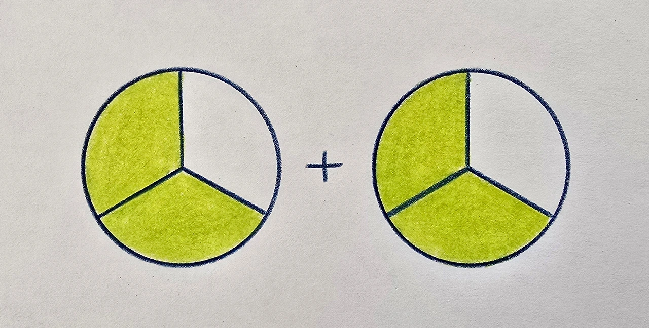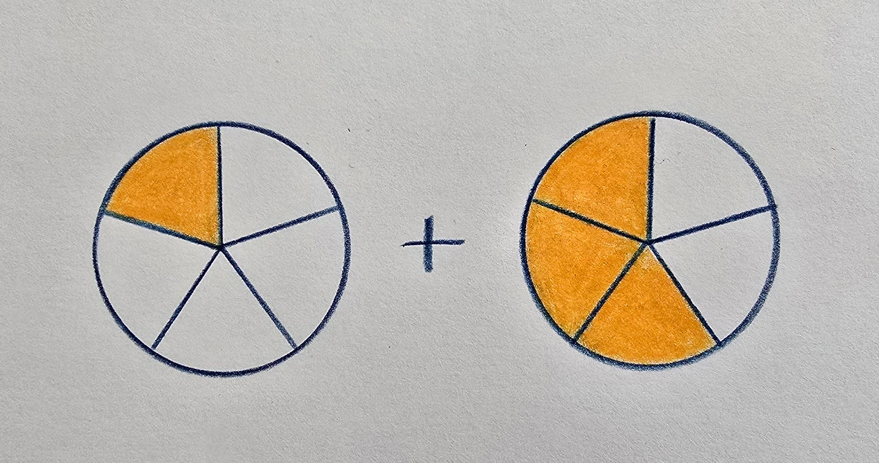 계산 결과는 여러분의 예상대로 ⅘가 맞아요. 분모가 같은 분수끼리 더할 때는 분모는 그대로 두고 분자만 더해니다. 왜 그런 걸까요? 걸 아는 게 핵심입니다.