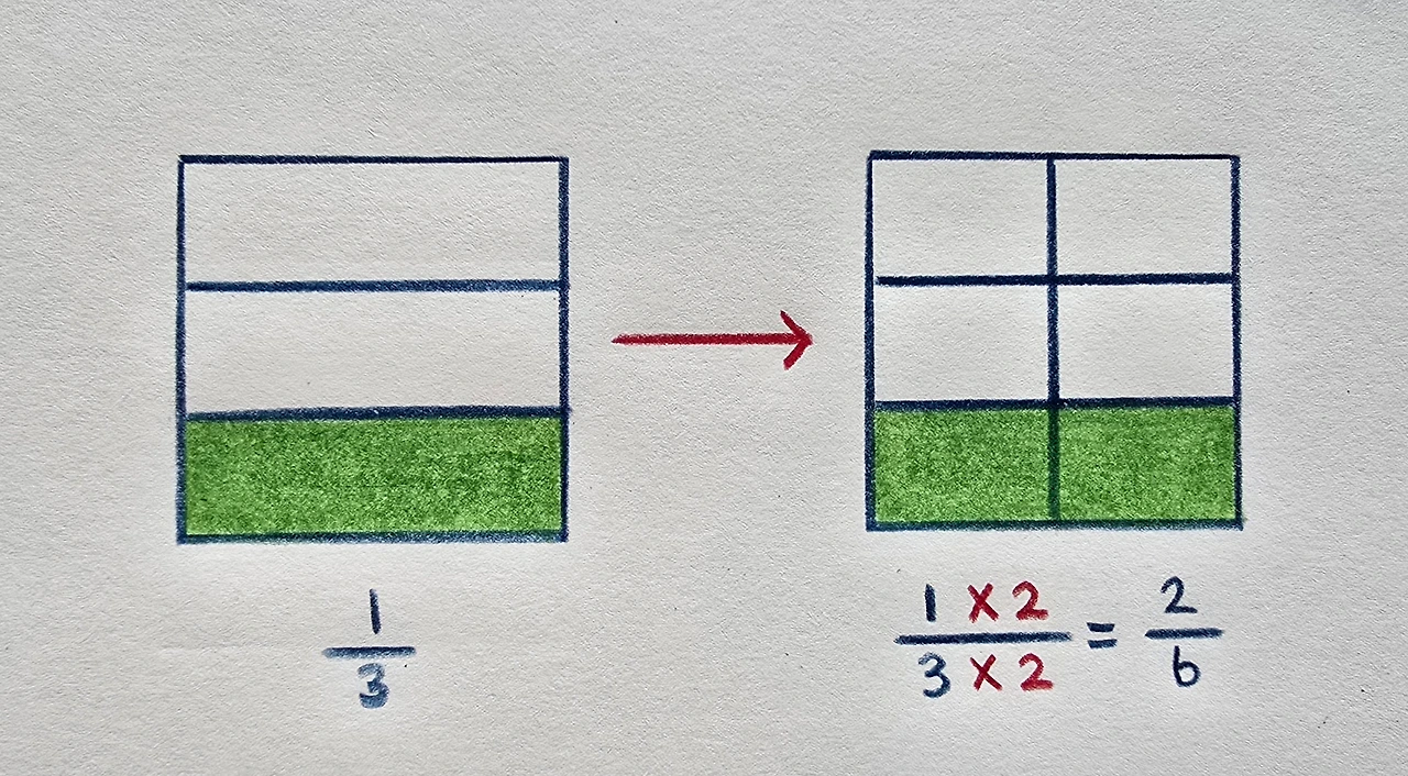 ⅓의 분자와 분모에는 똑같이 2를 곱해어요.