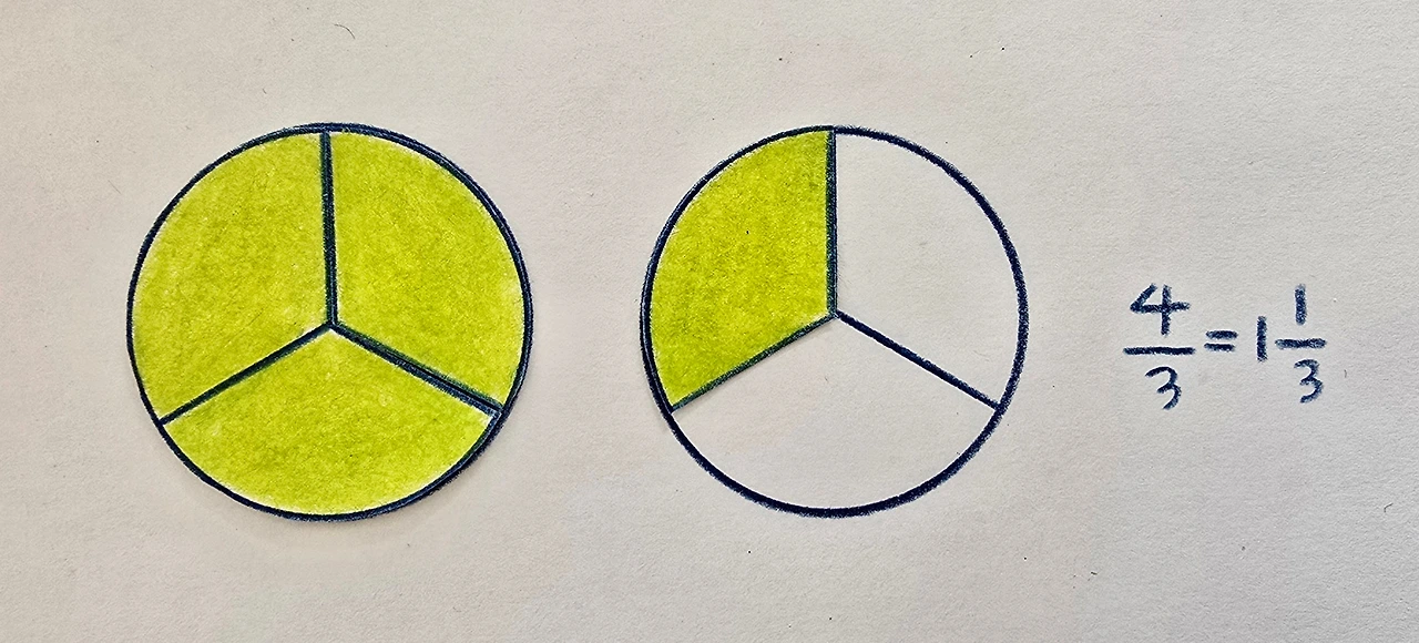 그렇다면 ⅔+⅔는 ⅓이 4개가 되죠. 4/3이면서 1⅓이기도 한 겁니다.